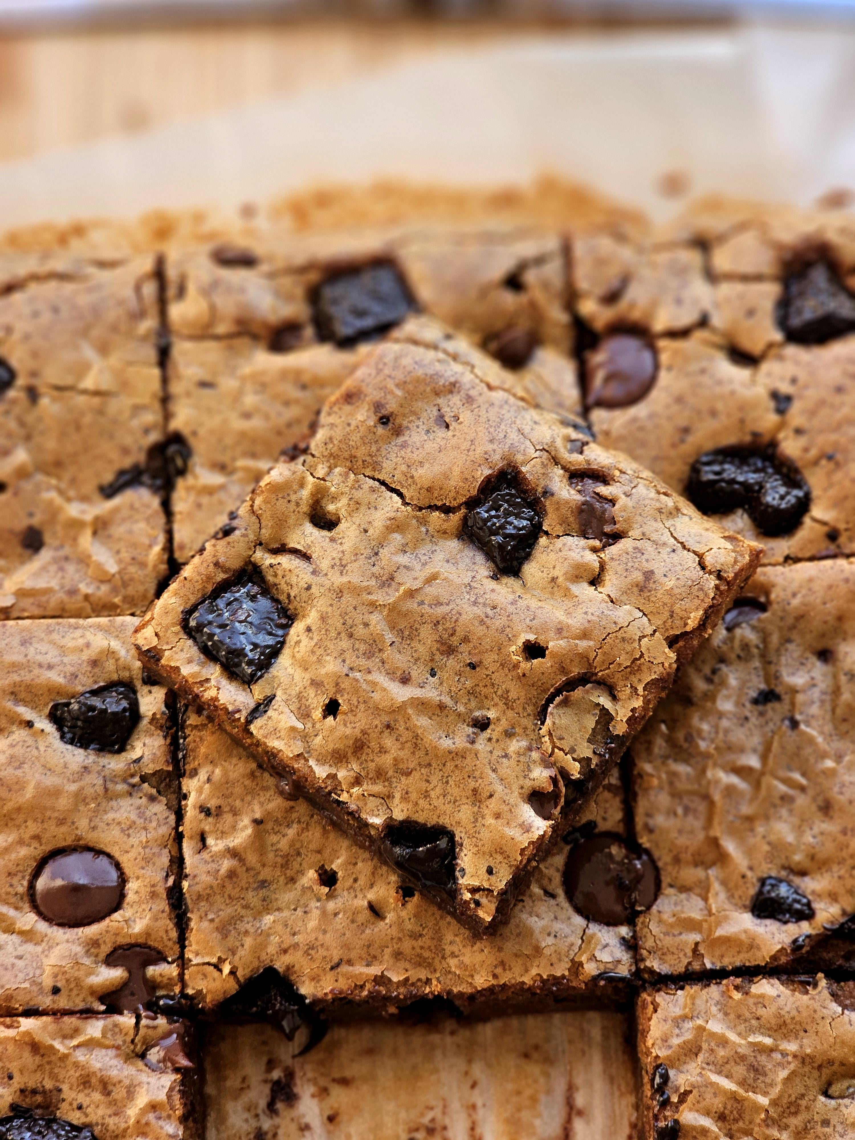 For those unware, it's called Blondie, it's basically a lighter and easier malleable cookie dough but laid into a brownie pan, like a whole slab baked in a tray unlike cookies being in small round shape.