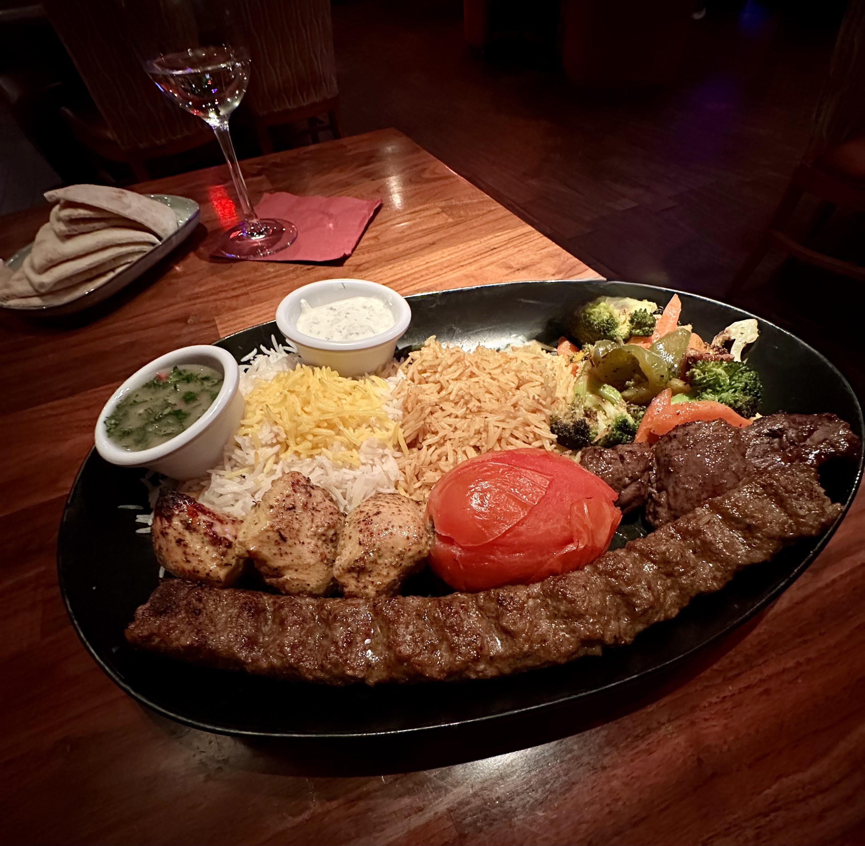 Mediterranean Dish with Lamb, Chicken and Beef Kabobs, served with Rice and Vegetable Medley by dentalexaminer Food Porn
