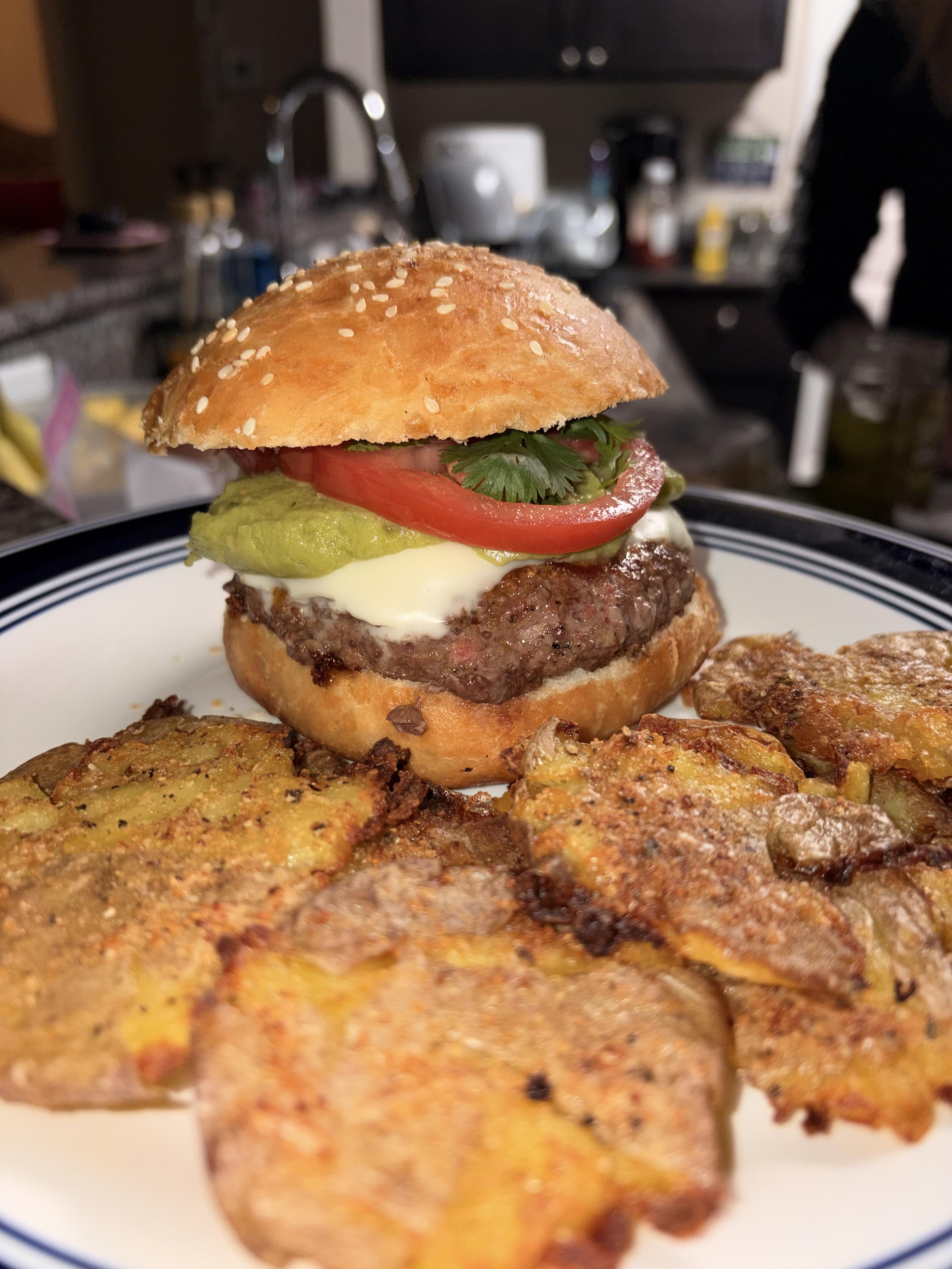 Guac and white American cheese burger on homemade buns by Salty-Cartoonist4483 Dinner Tonight Tonight's Dinner