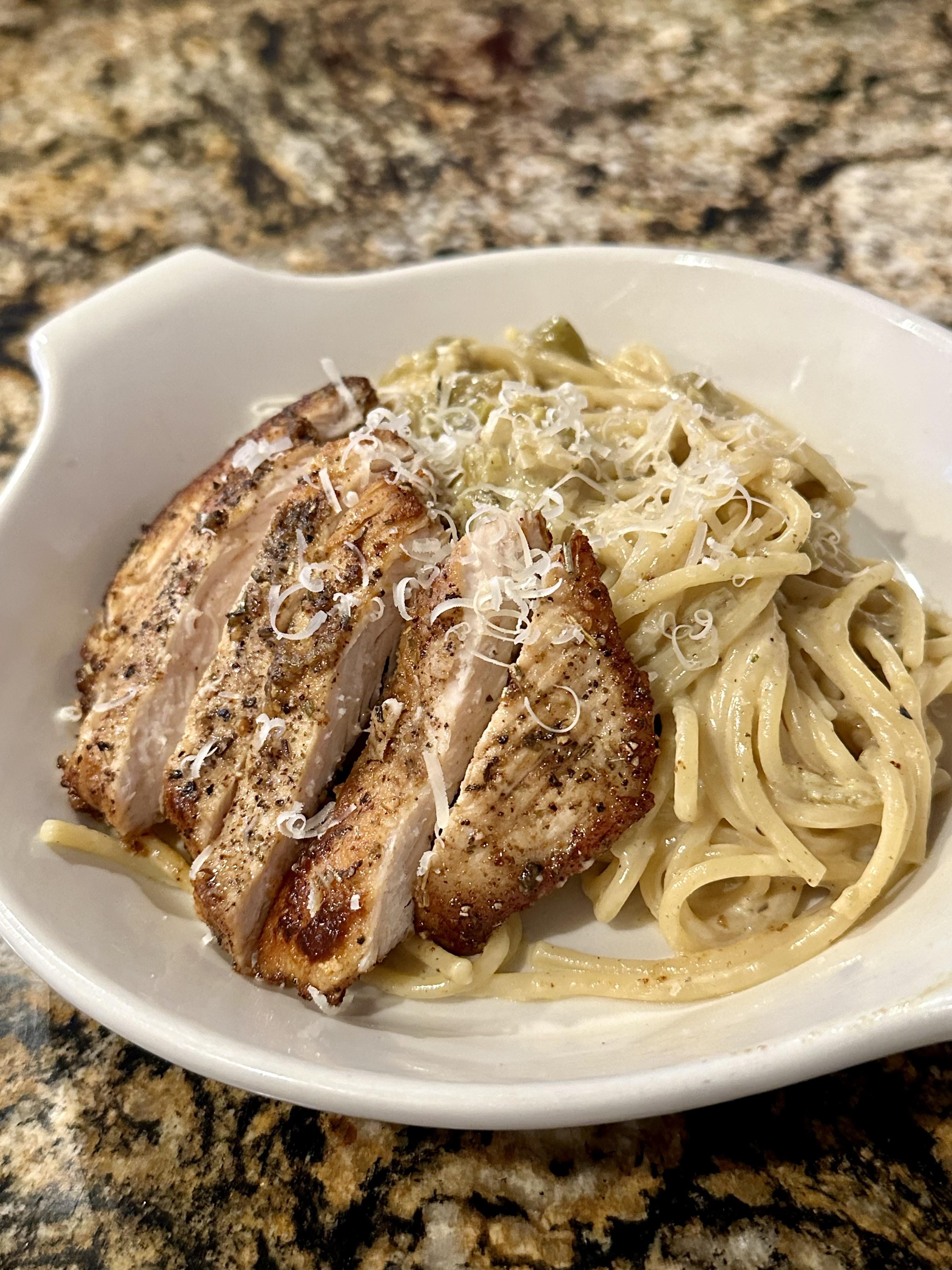 Garnished with fresh grated Parmesan