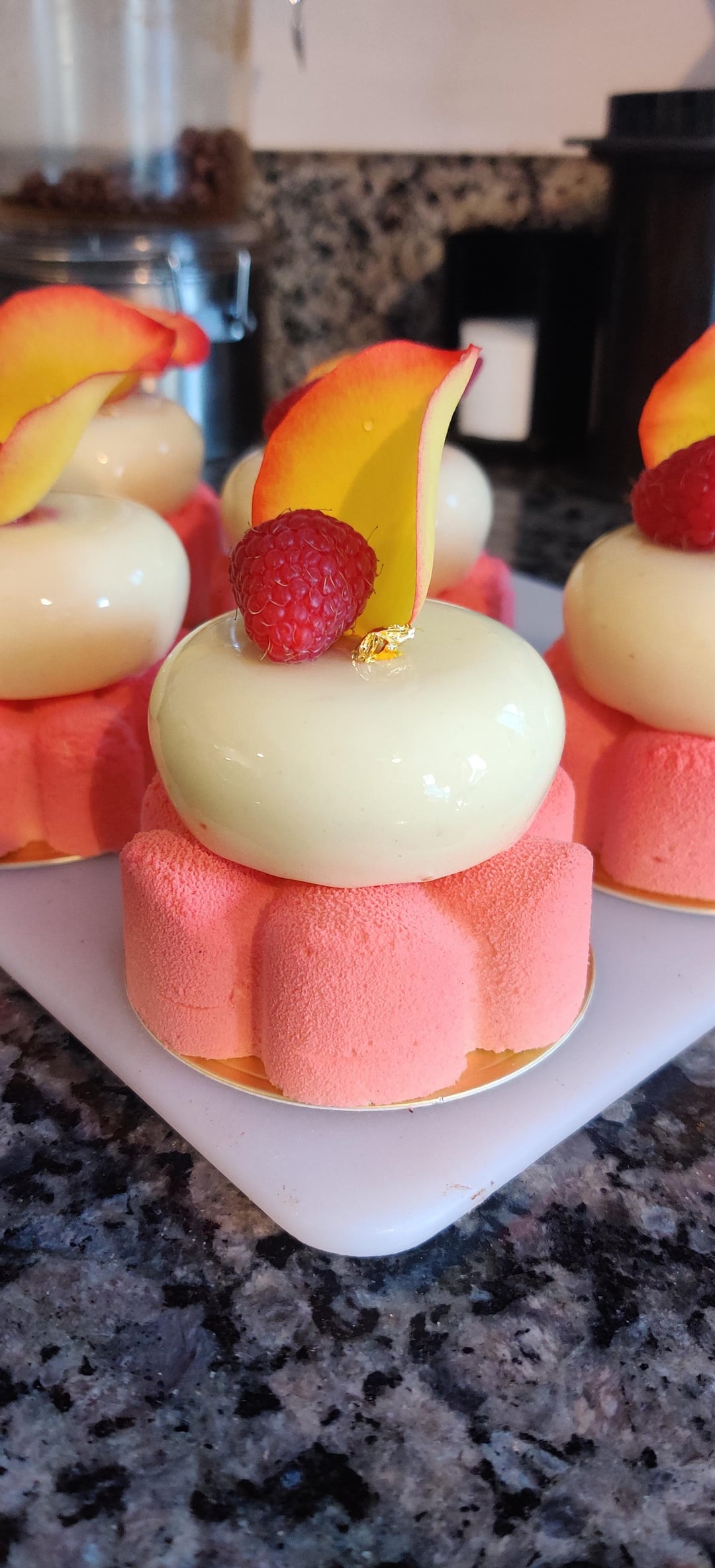 This turned out really really well, and was thoroughly enjoyed by the recipients. I made the raspberry jam quite tart through a combination of ascorbic and malic acid, since there’s a lot of fat in this pastry. Ispahan flavor profile is a “go big or go home” kinda deal, if you balance it right it’s utterly transcendent. Biggest concern was getting all the textures to blend just right (and component stability, but that’s another story lol).