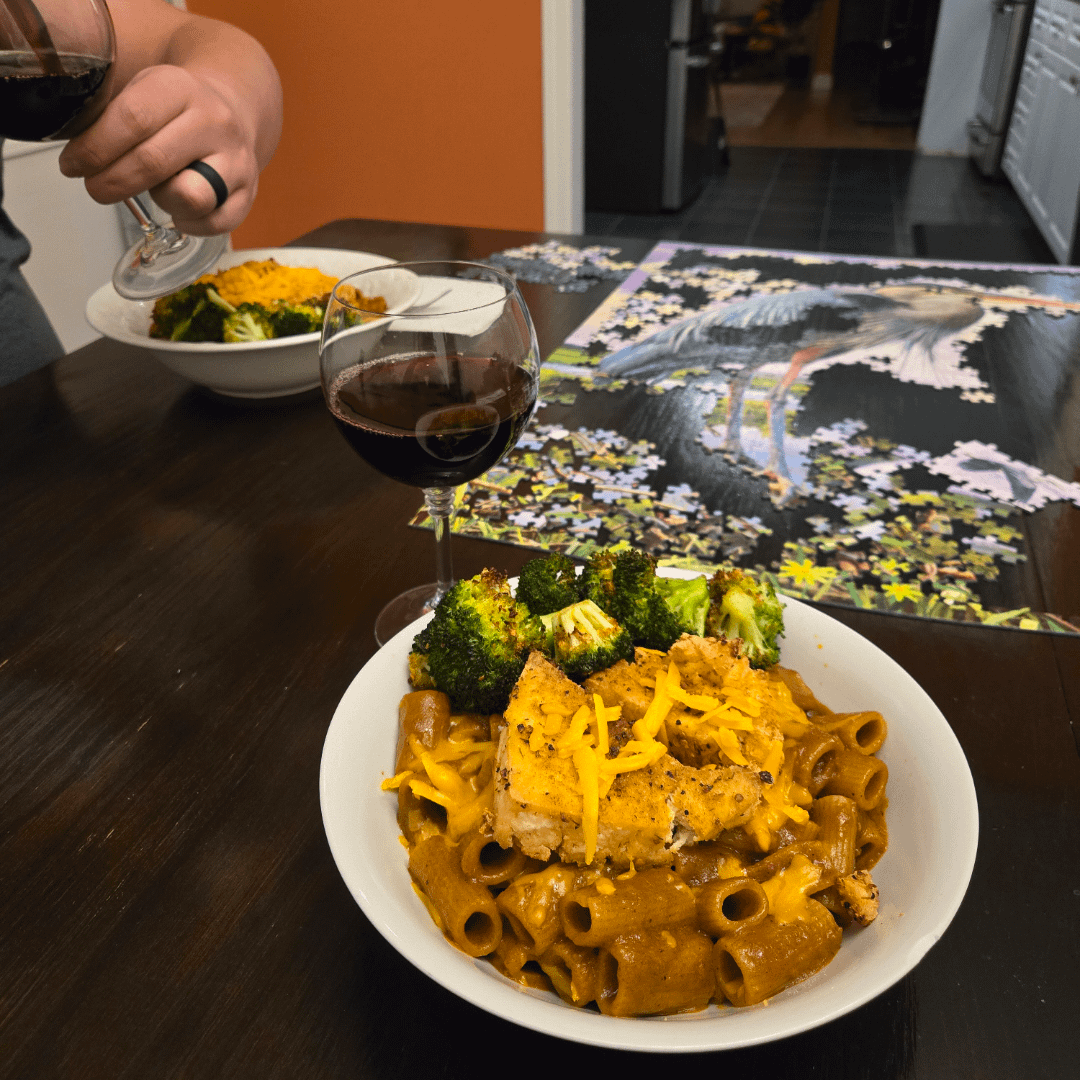 Huge bowl of pacceri in fresh pasta sauce topped with a slab of tofu by FlourAndFleur Dinner Tonight Tonight's Dinner