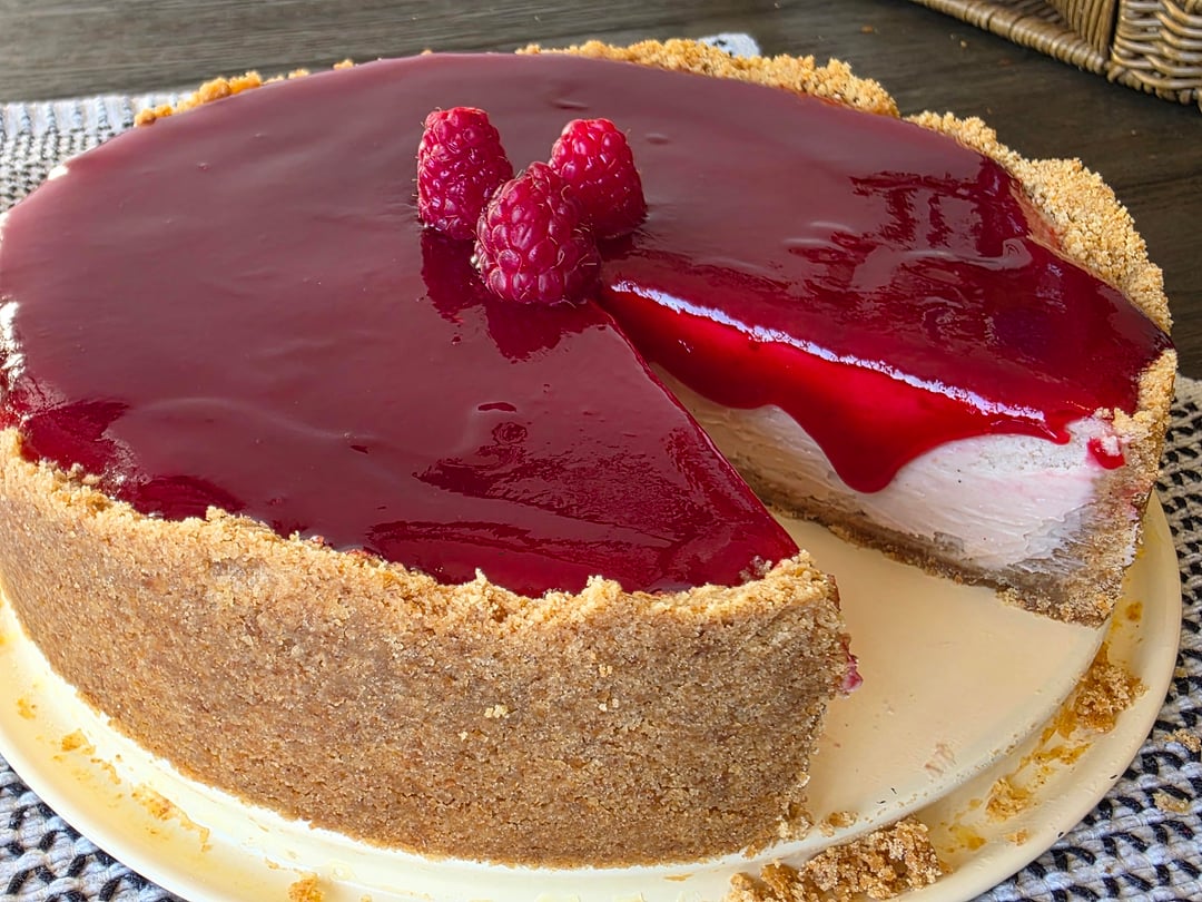 https://theloopywhisk.com/2021/06/04/easy-baked-raspberry-cheesecake/ – Recipe.