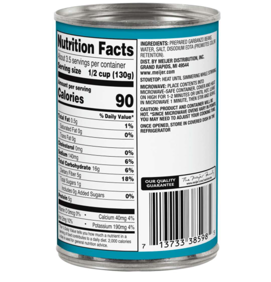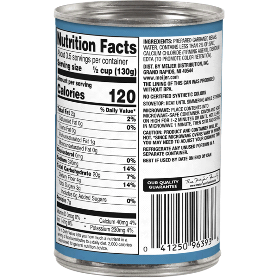 They're both Meijer brand Garbanzo beans, the low cal one is low sodium. by Probicus 1200 Calorie 1200 Calorie Diet 1200 Calorie Meal Plan 1200 Kcals 1200 Kcals a day 1200 Kcals per day 1200 Kilocalorie 1200 Kilocalorie a day 1200 Kilocalorie per day 1200isplenty