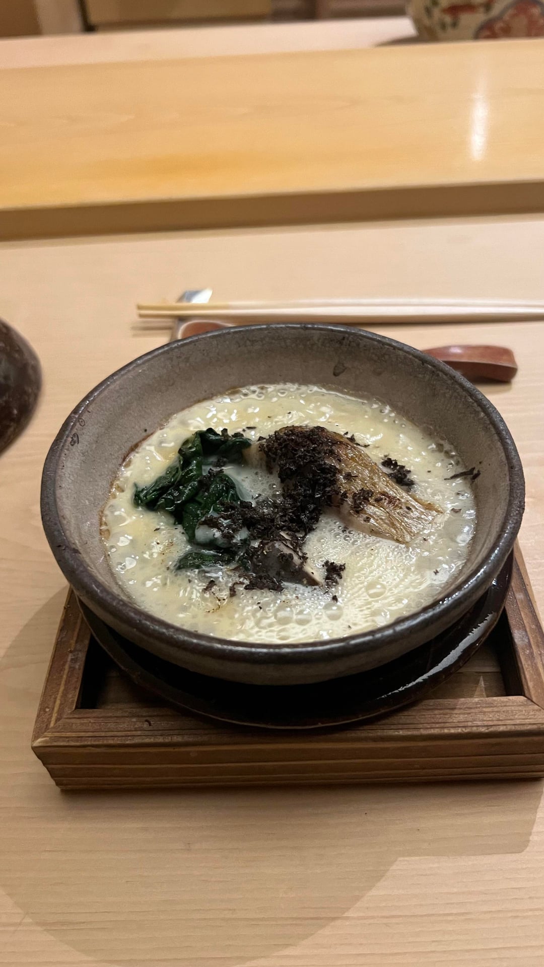 Sushi Noz: First time trying high-end sushi in NYC, and it was fantastic. 5 of the 6 otsumami courses were excellent, especially the grilled bonito and what Noz described as a “clam chowder” with perch (pic 3), which was probably the best dish of the trip. Nigiri part of the menu was also fantastic, especially the tuna (pic 4). The only downside was a guest seated directly in front of Noz who couldn’t stop coughing over the sashimi, which was pretty annoying. Still, not Noz’s fault, overall a great experience.