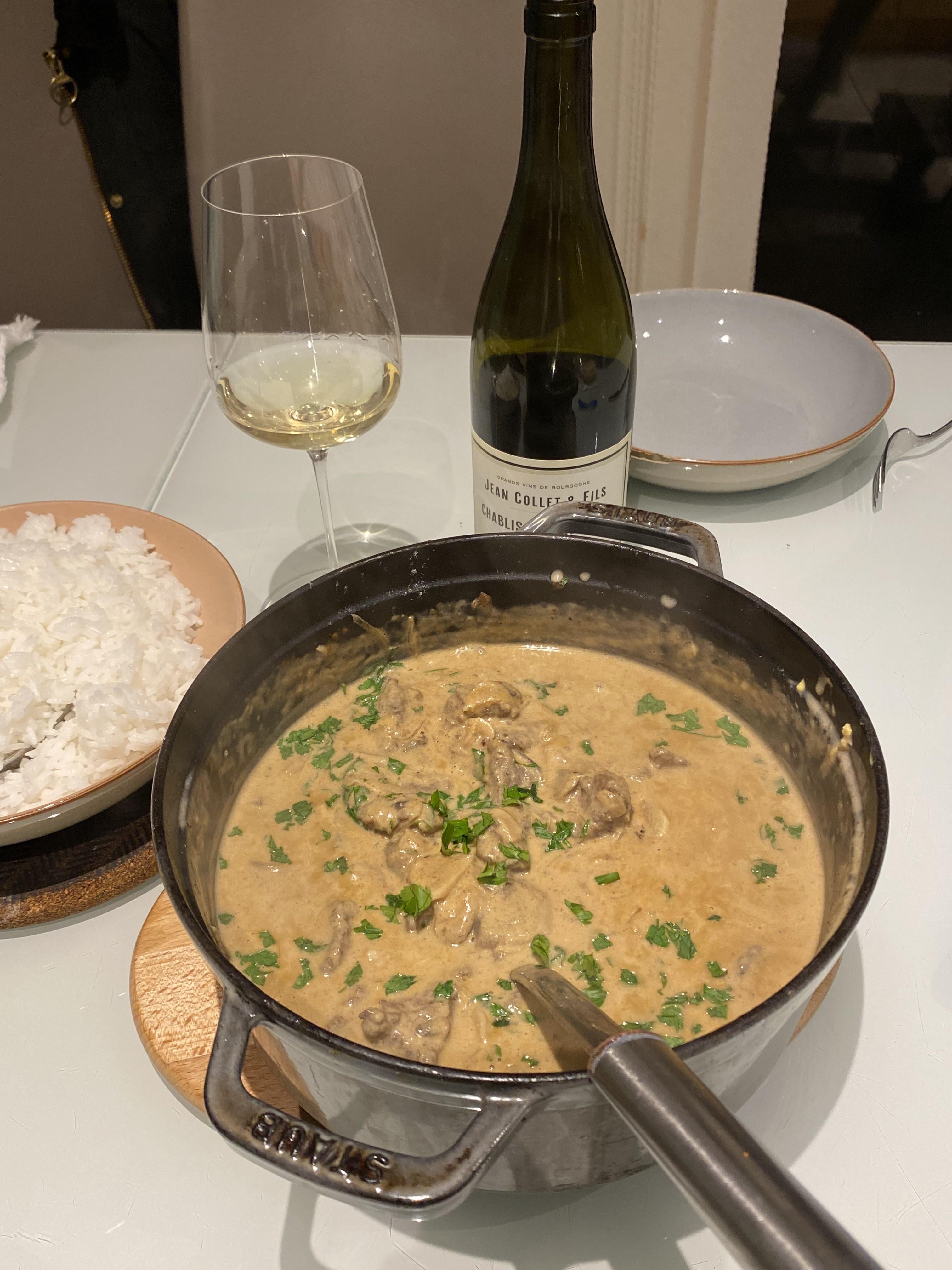 [Homemade]Steak with peppercorn cream sauce, Twice Baked Potato with bacon, broccoli, and cheese, & Creamy-Beefy-Shroomy (Stroganoff) Soup in a sour dough bread bowl.