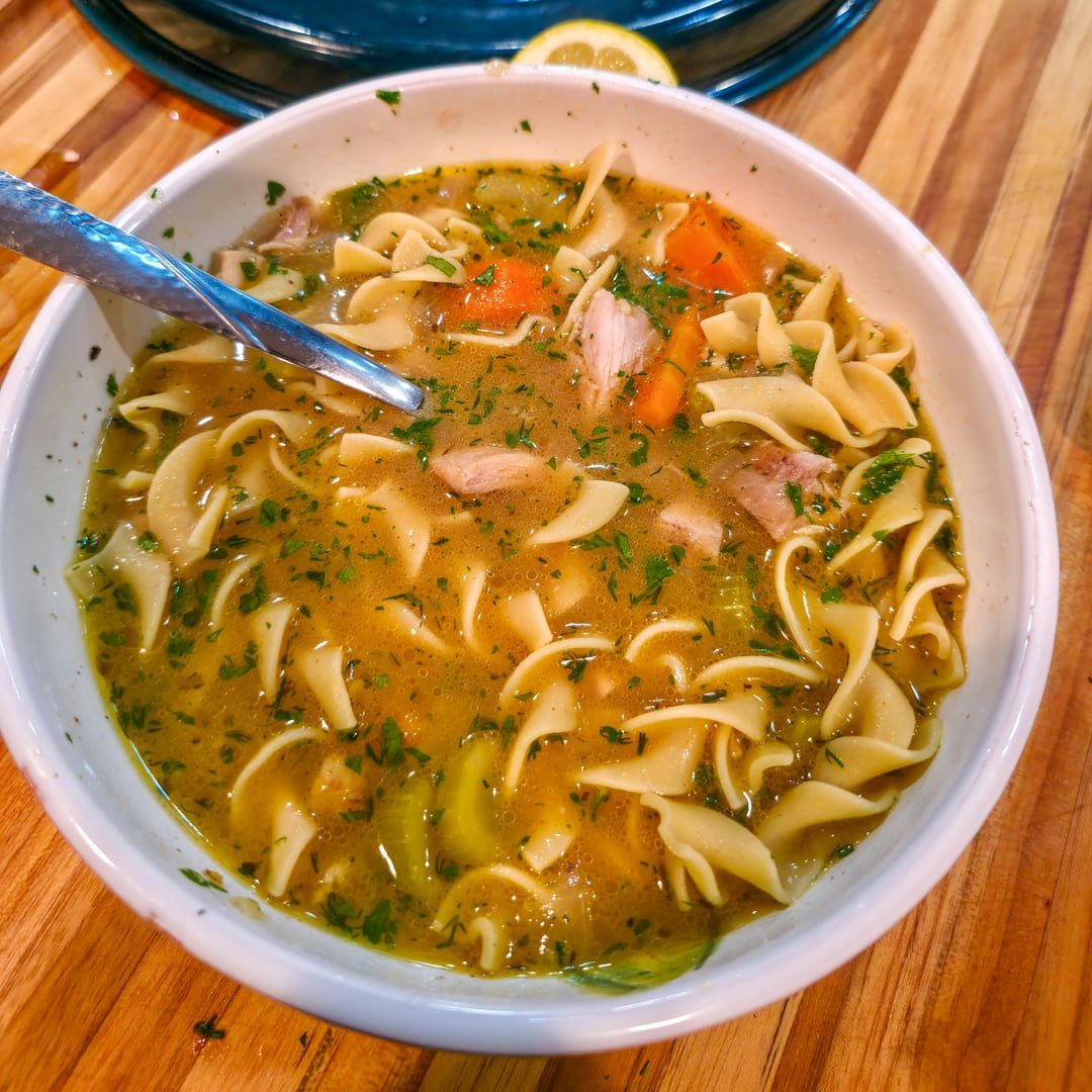 – Cook egg noodles in separate pot according to packaging, then add to bowl with soup, chopped herbs, and a squeeze of lemon. *You can cook the noodles in the soup if planning on serving all of it immediately.