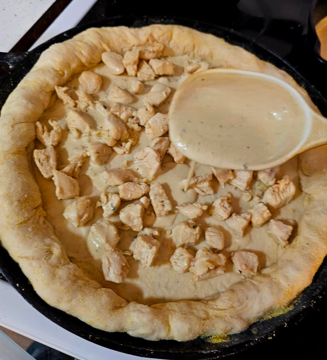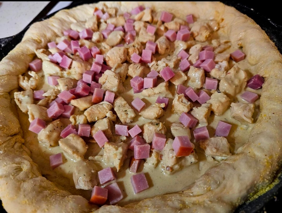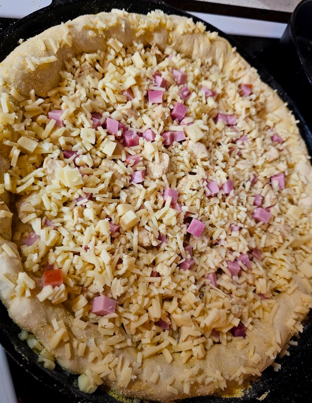 I did a chicken stuffed crust pizza before so I thought I’d do it again but add ham & cheese 😂