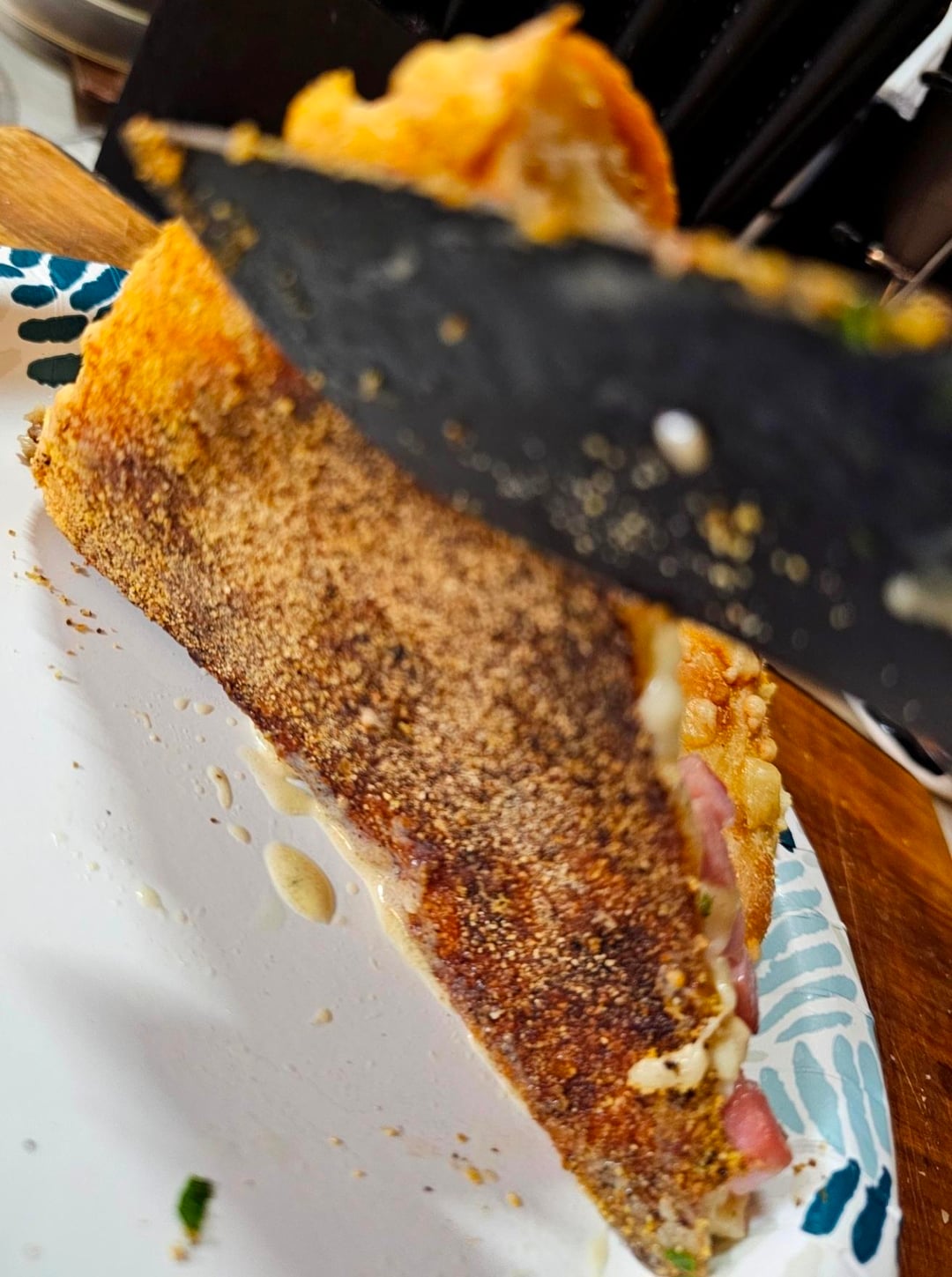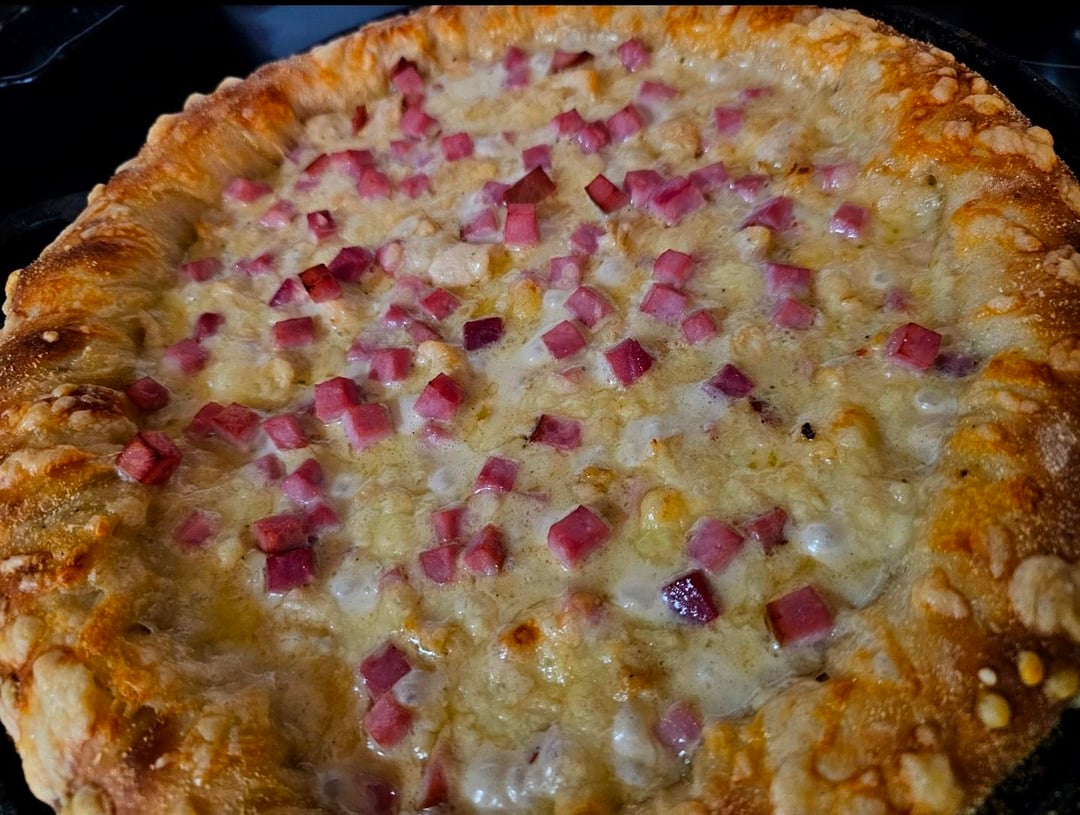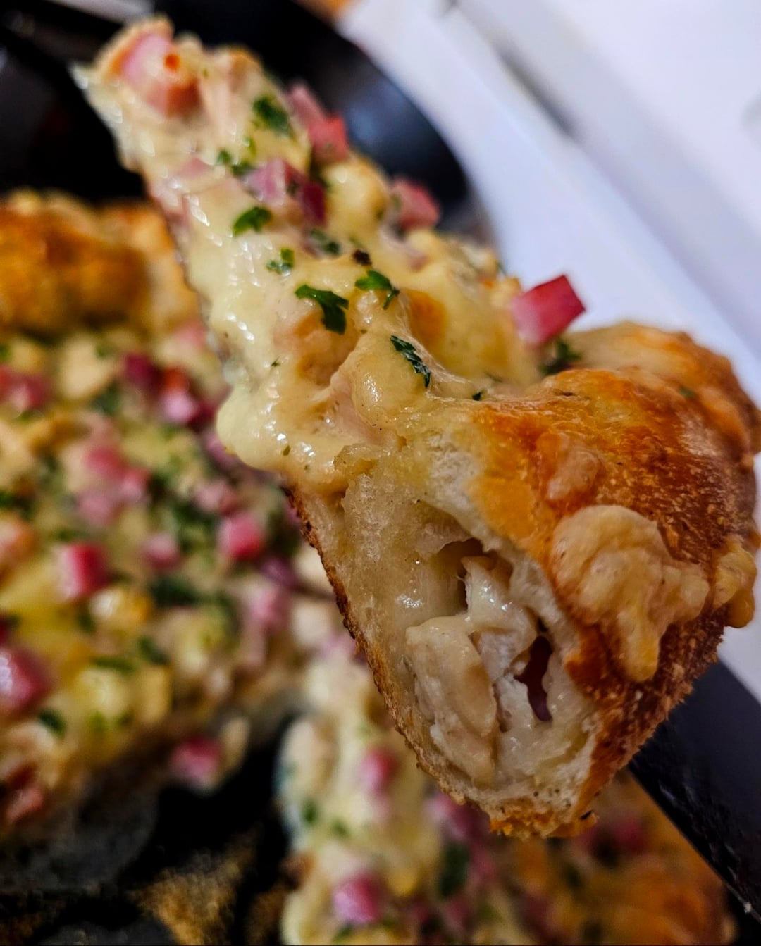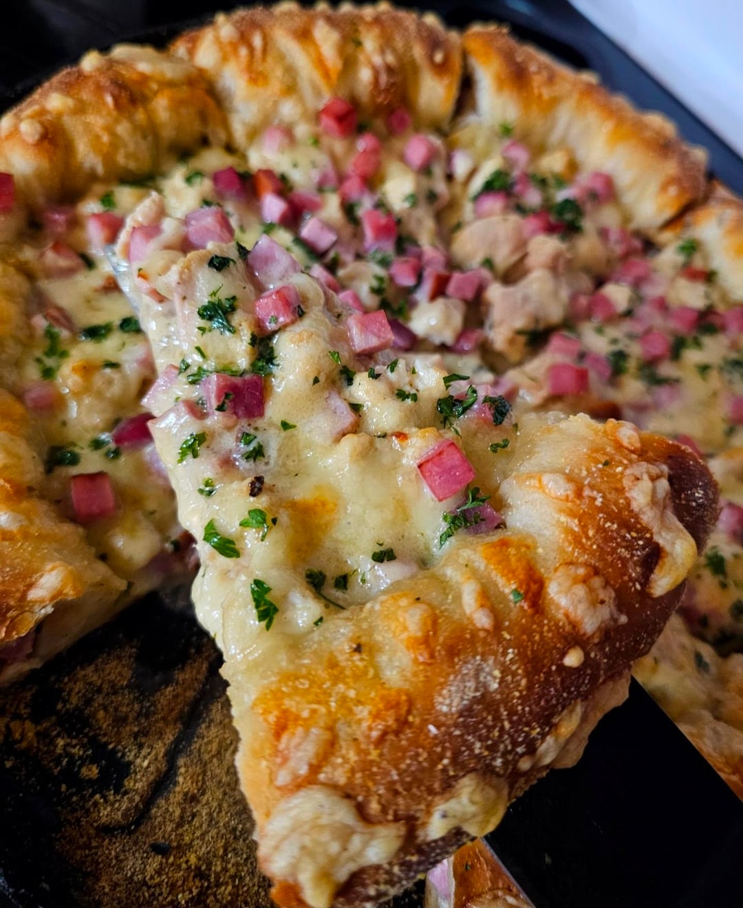 I did a chicken stuffed crust pizza before so I thought I’d do it again but add ham & cheese 😂