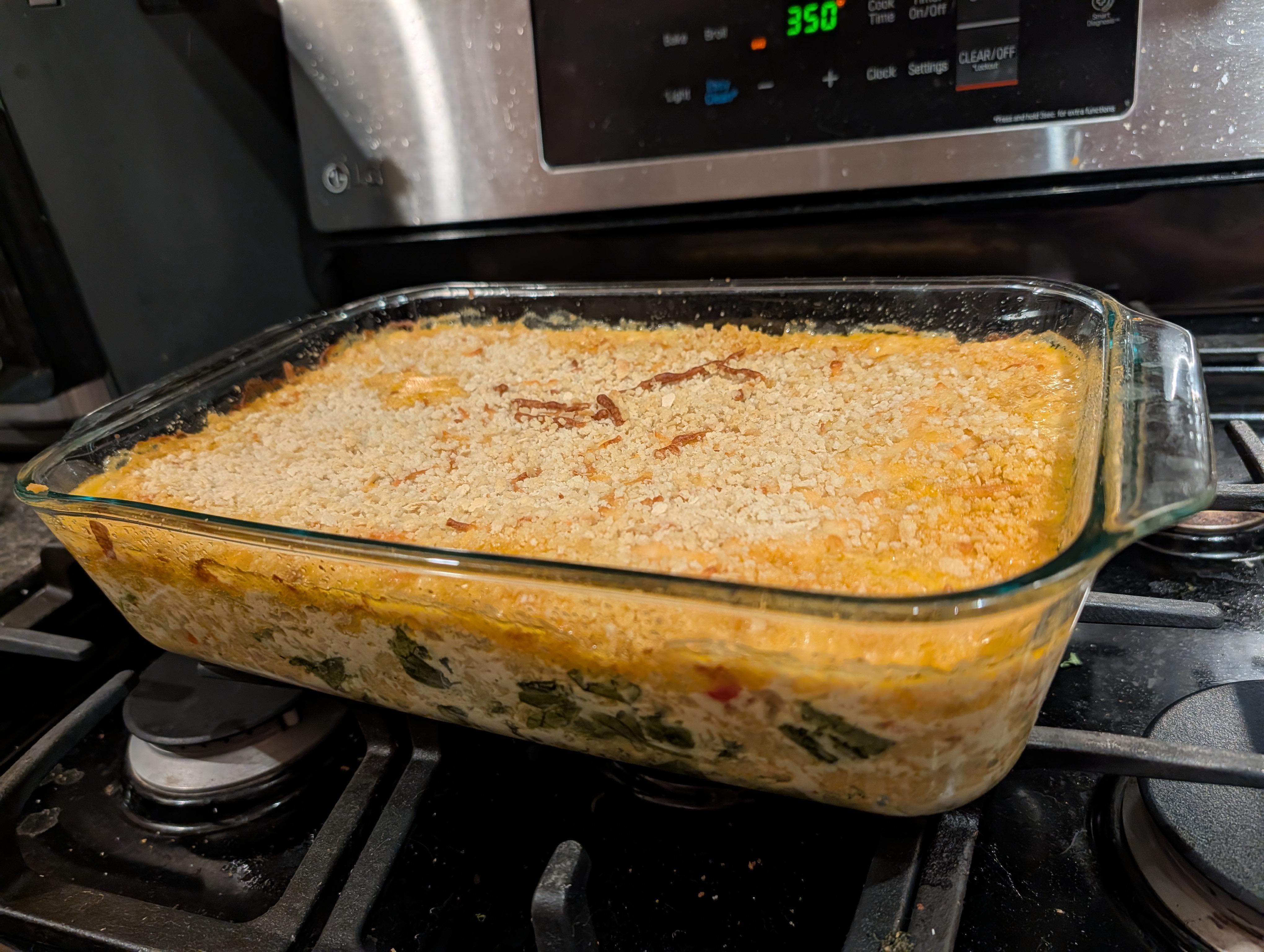 millees on February 10, 2026 4:48 am Doubled recipe. Added a half red onion and one red bell pepper before making roux, and a couple cups of spinach as the cheese sauce was finishing up. Did not opt to toast the breadcrumbs because lazy. Please pray for my arteries.
