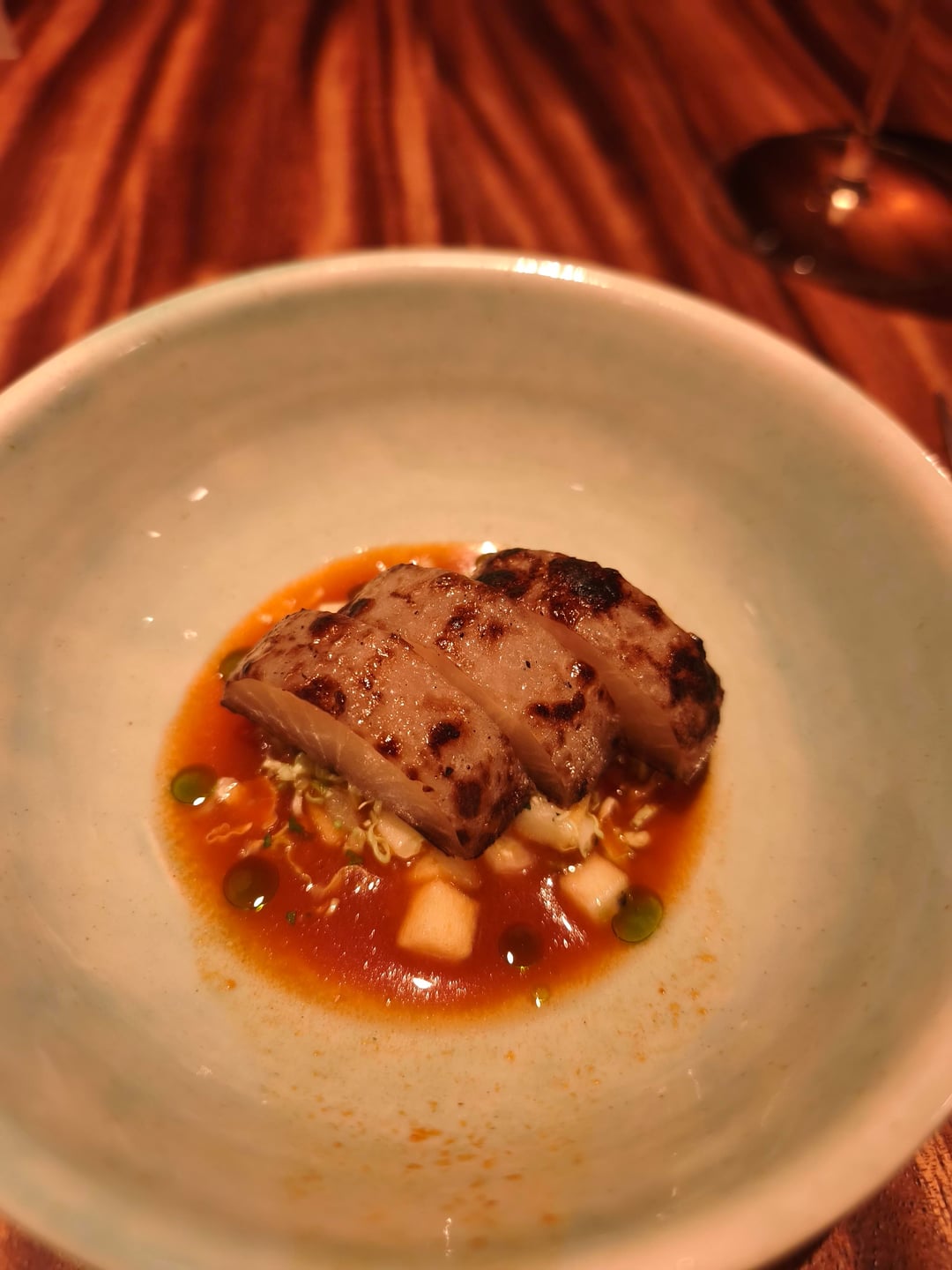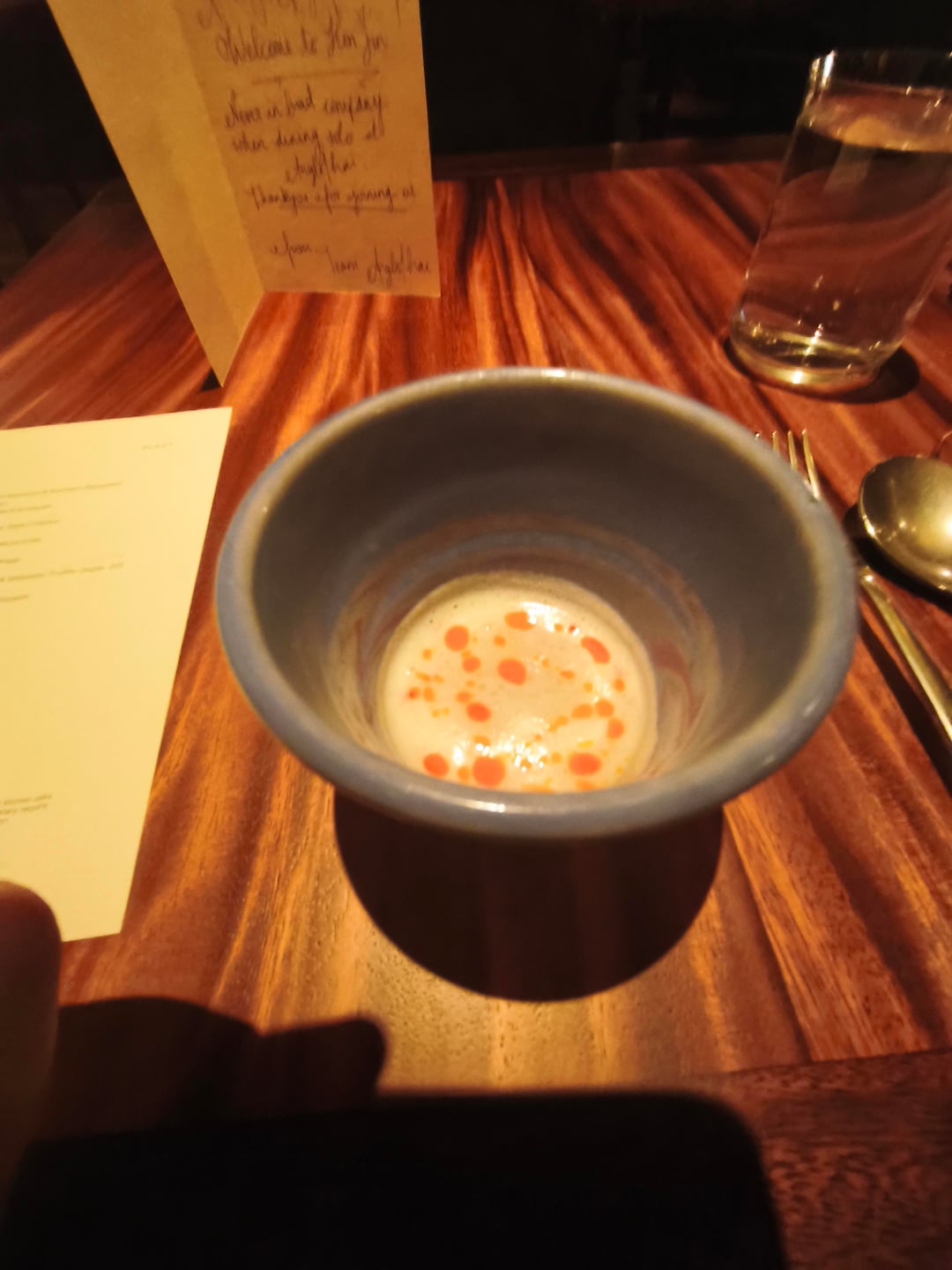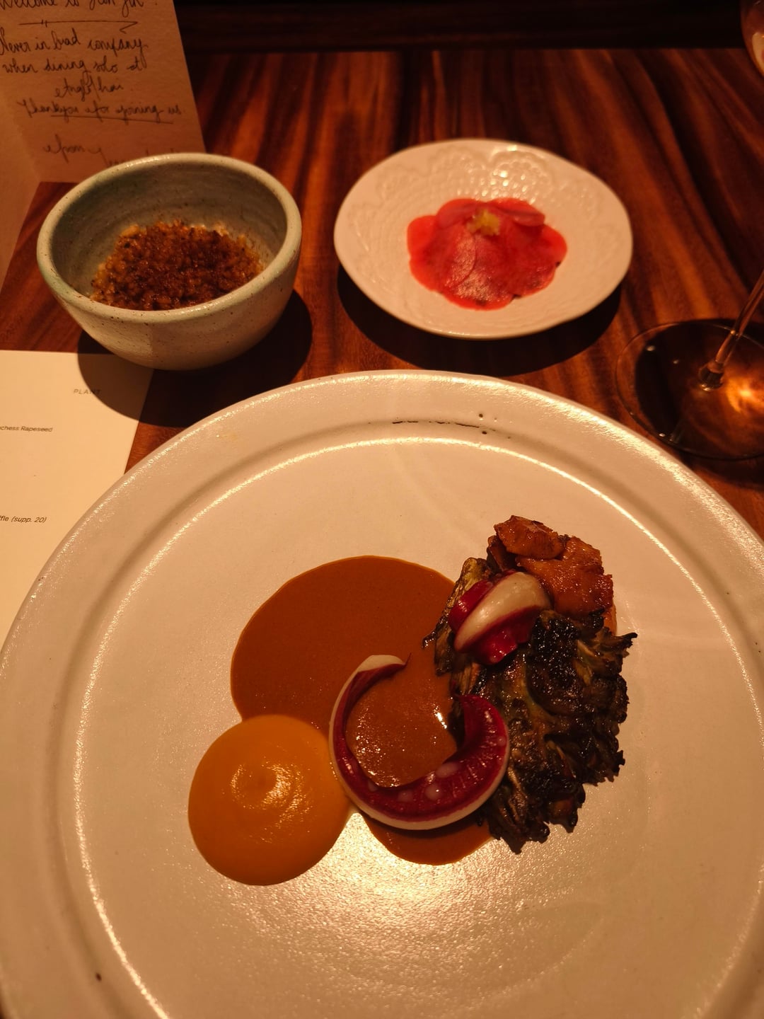 Service was great, and staff attentive – there were only a couple covers at the start of service, but was full by mid evening and service remained very attentive and friendly. Table-side saucing of dishes was sometimes a little messy, with spills and uneven pours on a couple of dishes. Don't love that solo diners can only book at the start or end of service.