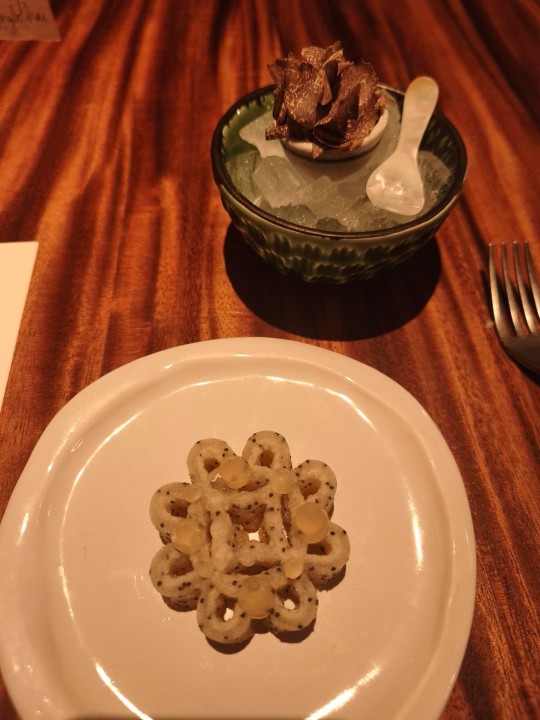My experience with vegan / plant-based set menus have always been a little hit and miss, with many places feeling like they just took the protein off and replaced it with a vegetable. A lot of the courses at Anglothai were very very good – hitting on those strong thai flavours, with well-prepared veggies. For their signature poppy seed cracker, replacing the caviar with truffle was not the best substitute. The steamed and wok-fried oats were a standout dish. Lots of blended and pureed nuts, which added that fattiness missing from the lack of dairy.