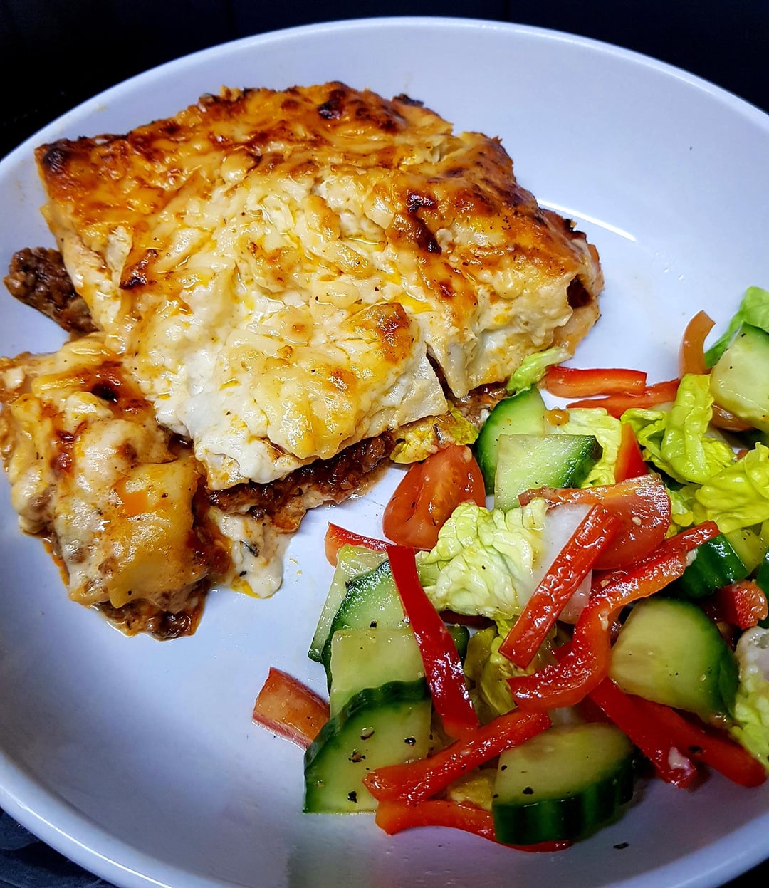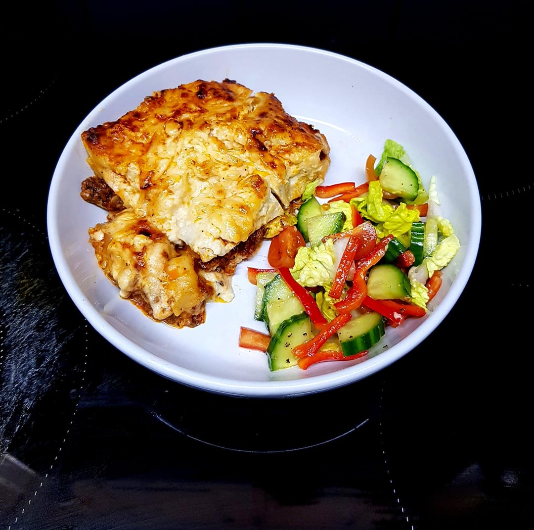 Started at 5am, Cause Insomnia 🙄 Lasagne with Egg Bechemel and 3 Cheese Top. Dinner Tonight and Lunch for the Week. Served with a Salad.