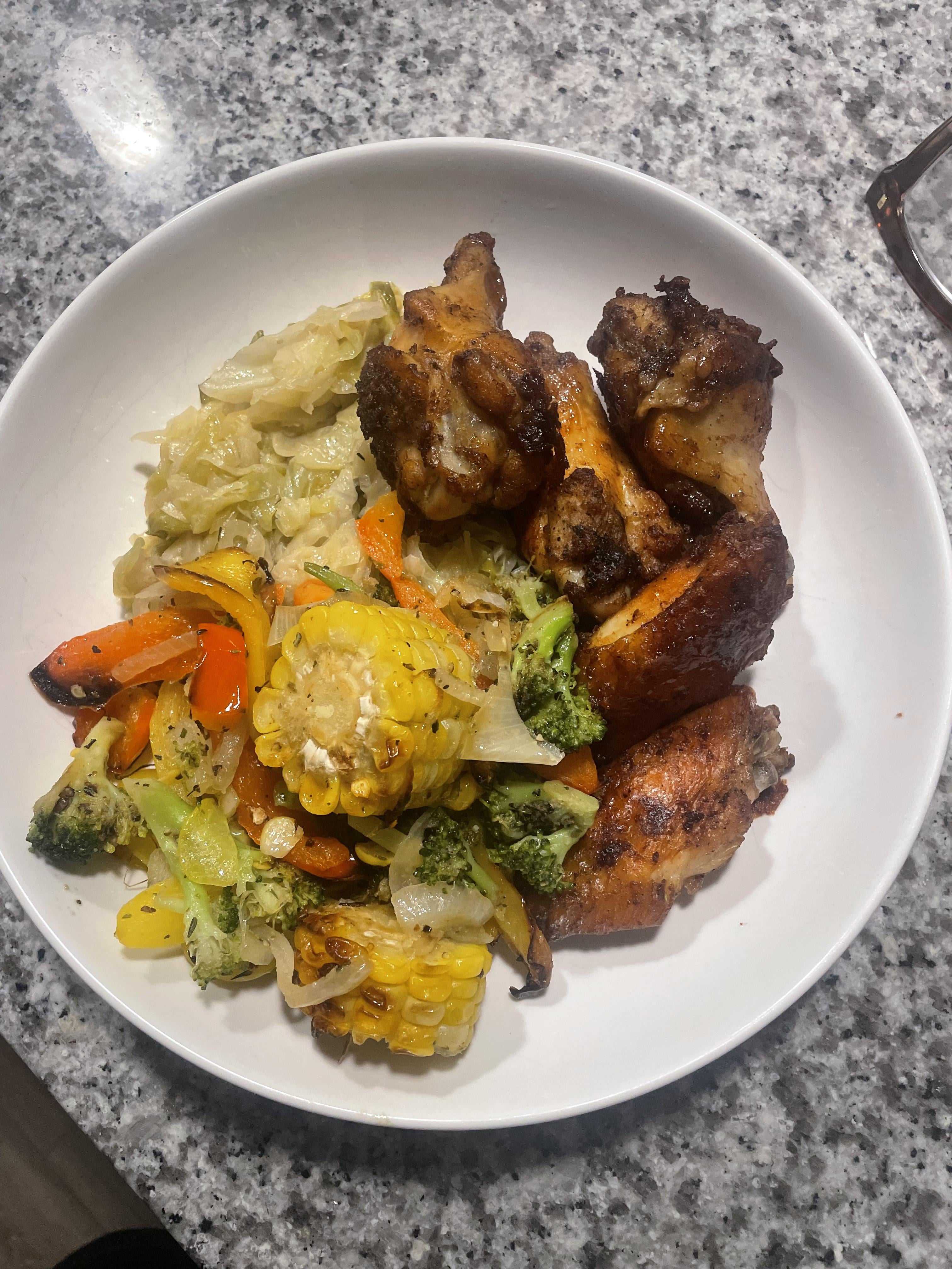 Baked chicken wings with cabbage and mixed vegetables by NeedleworkerNo9998 Dinner Tonight Tonight's Dinner