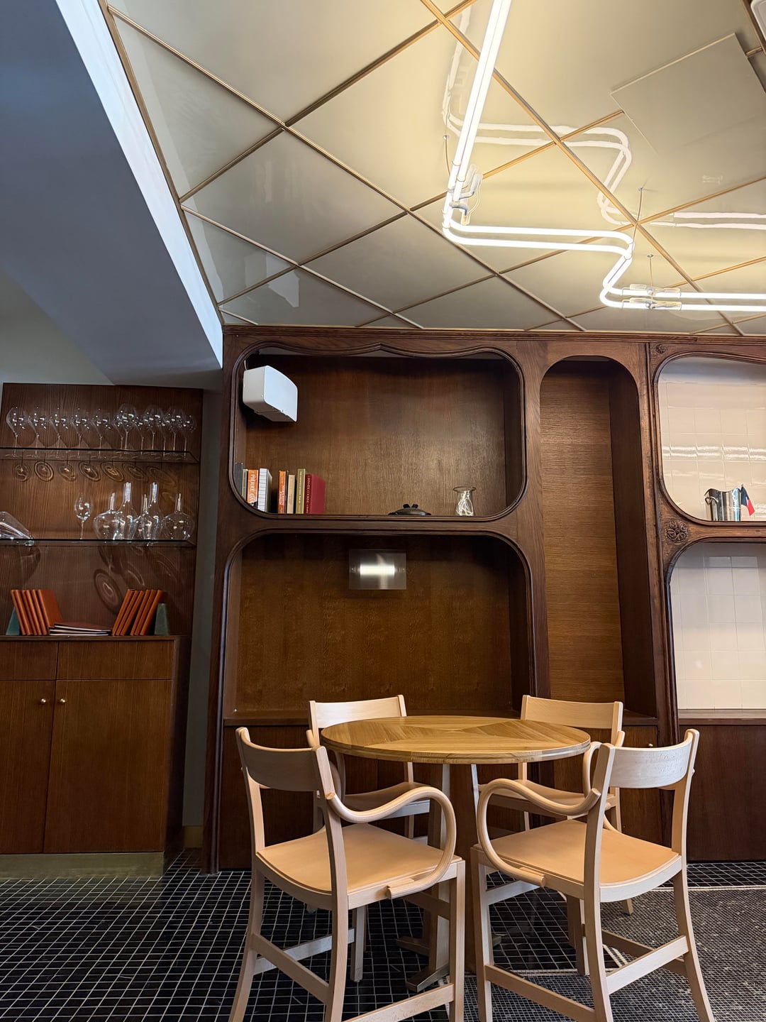 I went to Cypsèle alone for lunch and genuinely loved the experience. The location on Île Saint Louis is already charming, but the restaurant itself is truly beautiful. The architecture and interior design are striking without feeling overdone. The space was redesigned by the London based studio Nice Projects, who transformed a former pharmacy into something both elegant and warm. Historic details like the old wooden shelving and mosaic floors have been carefully preserved, while modern touches bring a real sense of calm and personality. It’s a place where you immediately feel comfortable, even when dining solo.