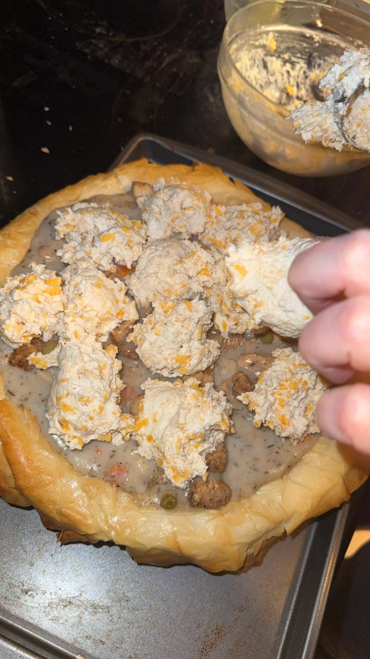 Chicken pot pie with phyllo dough bottom and Cheddah Bay biscuits to top by Bob002 Dinner Tonight Tonight's Dinner