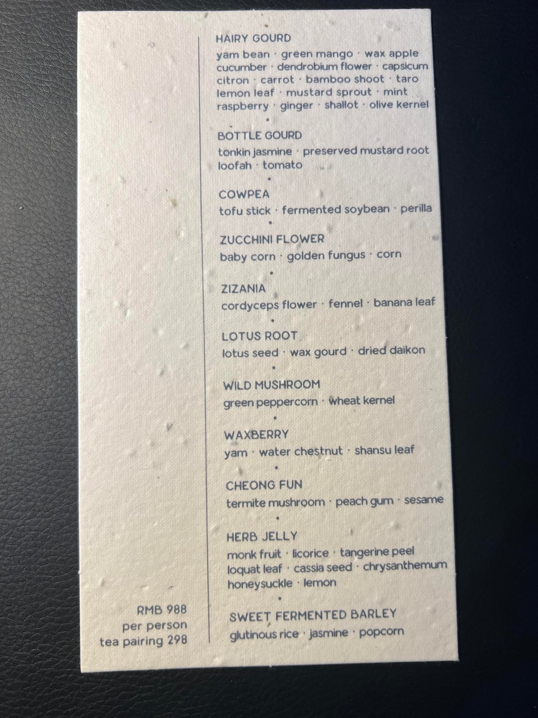 The food, unfortunately, just didn’t work for us. There was only one dish we truly enjoyed — the hairy gourd salad. They seemed very proud of using 16 different ingredients. Everything else felt underwhelming and lacked depth or excitement. We rarely leave dishes unfinished, but here we left most of the courses behind, which the staff didn’t seem particularly surprised by. Food wise I’d rate it around 3/10, maybe 4/10 overall including ambiance.