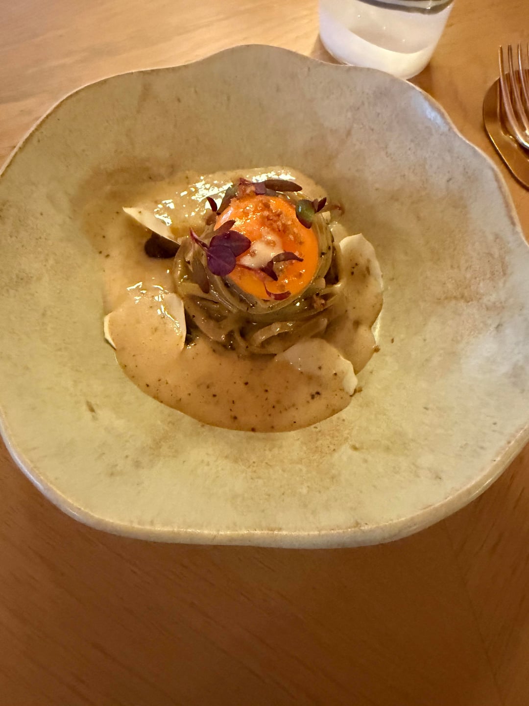 Just talking about the food, there is only 2 dishes that I had no problems with which was the pasta and the artichoke. The first course which was crab, the foam had a really weird flavour. The lobster pic actually had a sauce which I didn’t take a photo of and it was tandoori sauce and carrot puree and honestly…. I really didn’t like it. The pic after was ox tongue, texture was great but the sauce (chimichurri) wasn’t nice at all, it was way too sour. The turbot or the sauce had a fishy taste. The Wagyu was actually a bit smelly, it doesn’t have the normal Wagyu aroma. Ok my friend can’t taste this but what really struck me about the dish was the damn vegetables!!!!! The vegetable was so so so incredibly salty I wanted to spit it out. I just didn’t and forced myself to swallow it because of curtesy…. The other main was a veal sweetbread which was not my fav but the sauce was ok….. the second last dessert has that rice thingy and when you bite into it, the liquid that comes out honestly was too sickly sweet and a bit disgusting. The last dessert was a miso chocolate dessert which was like not really balanced? My friend said the 2024 winter menu dessert at row on 5 (miso chocolate cake) was a lot lot better than this.