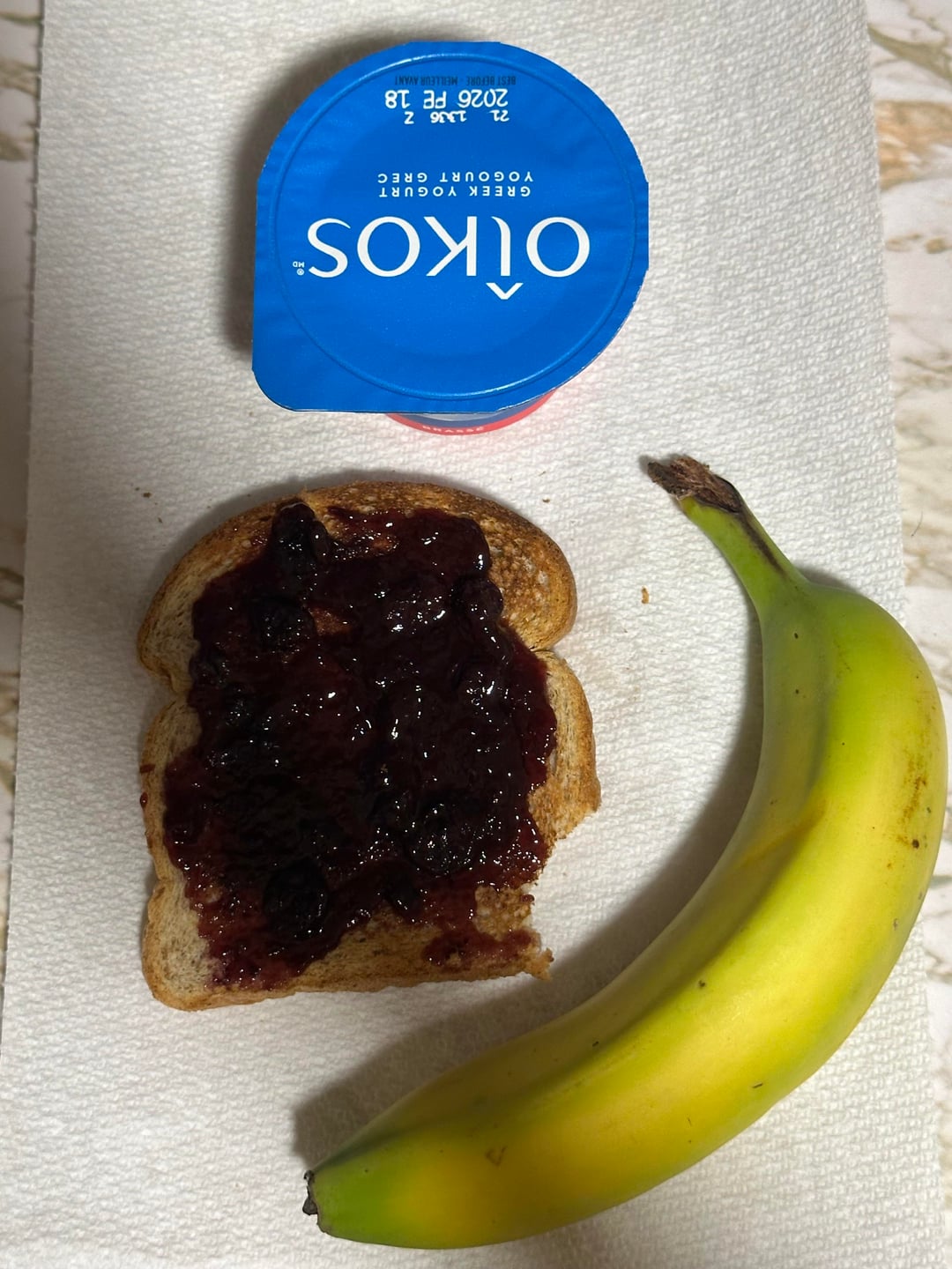 Breakfast: low cal Greek Yogurt cup (70 cal), banana, apple, 6 tbsp coffee creamer ~400 cal . (Sometimes I’ll do 2 medium eggs and toast, or toast and low cal PB or jam.)