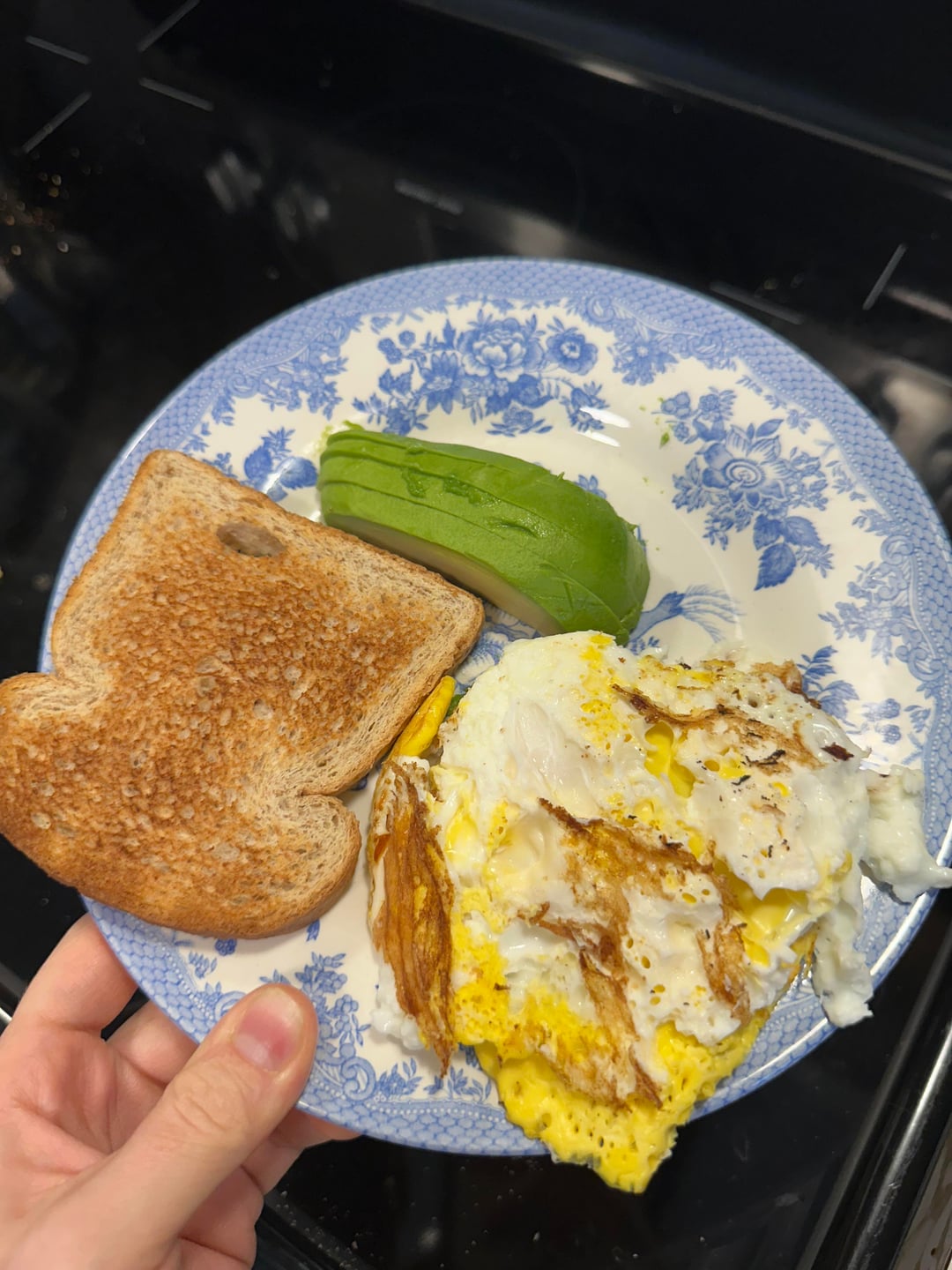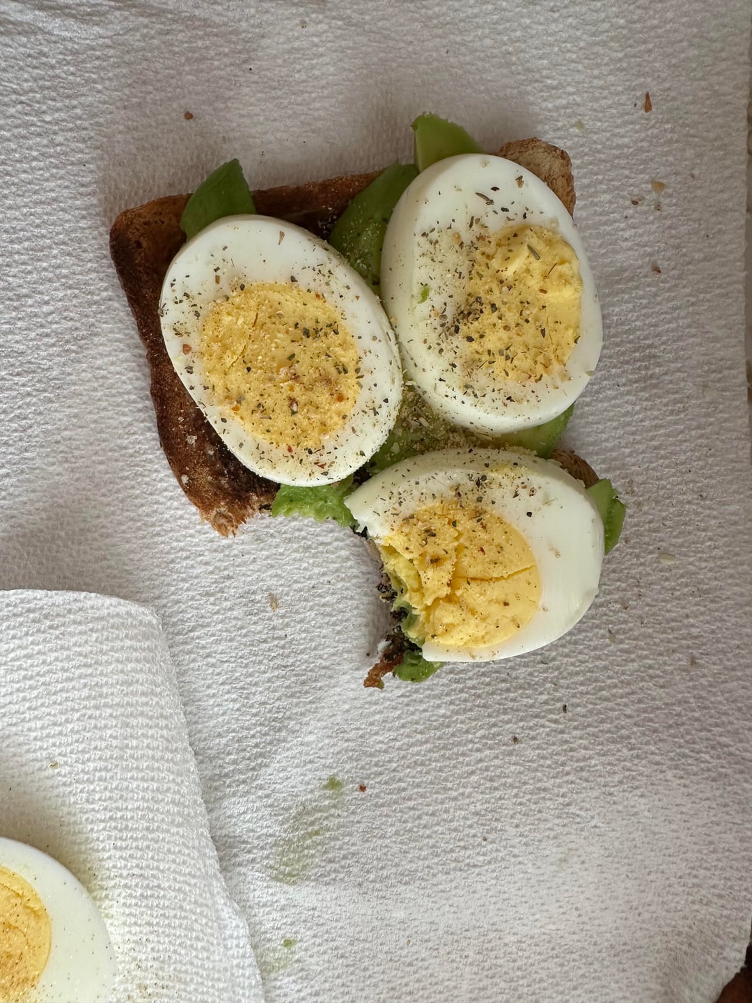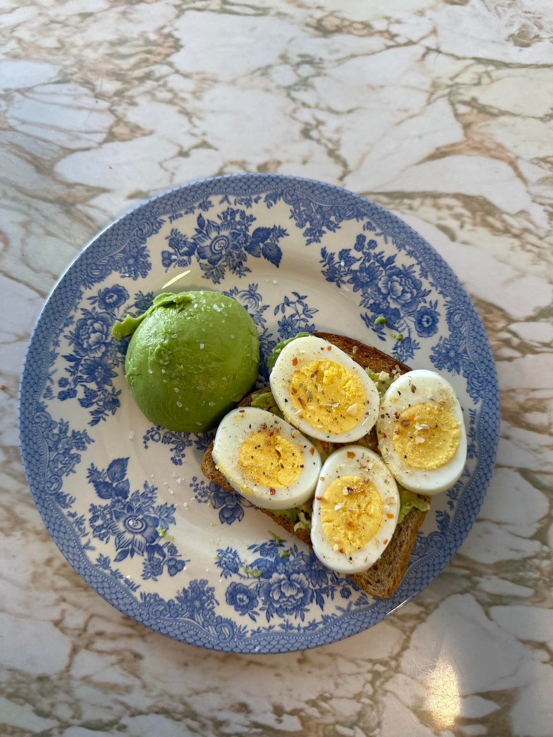 Lunch: 1 Avacado, 1 slice weight watchers brown bread toasted, with 2 medium hard boiled eggs OR a can of tuna ~ 372 cal