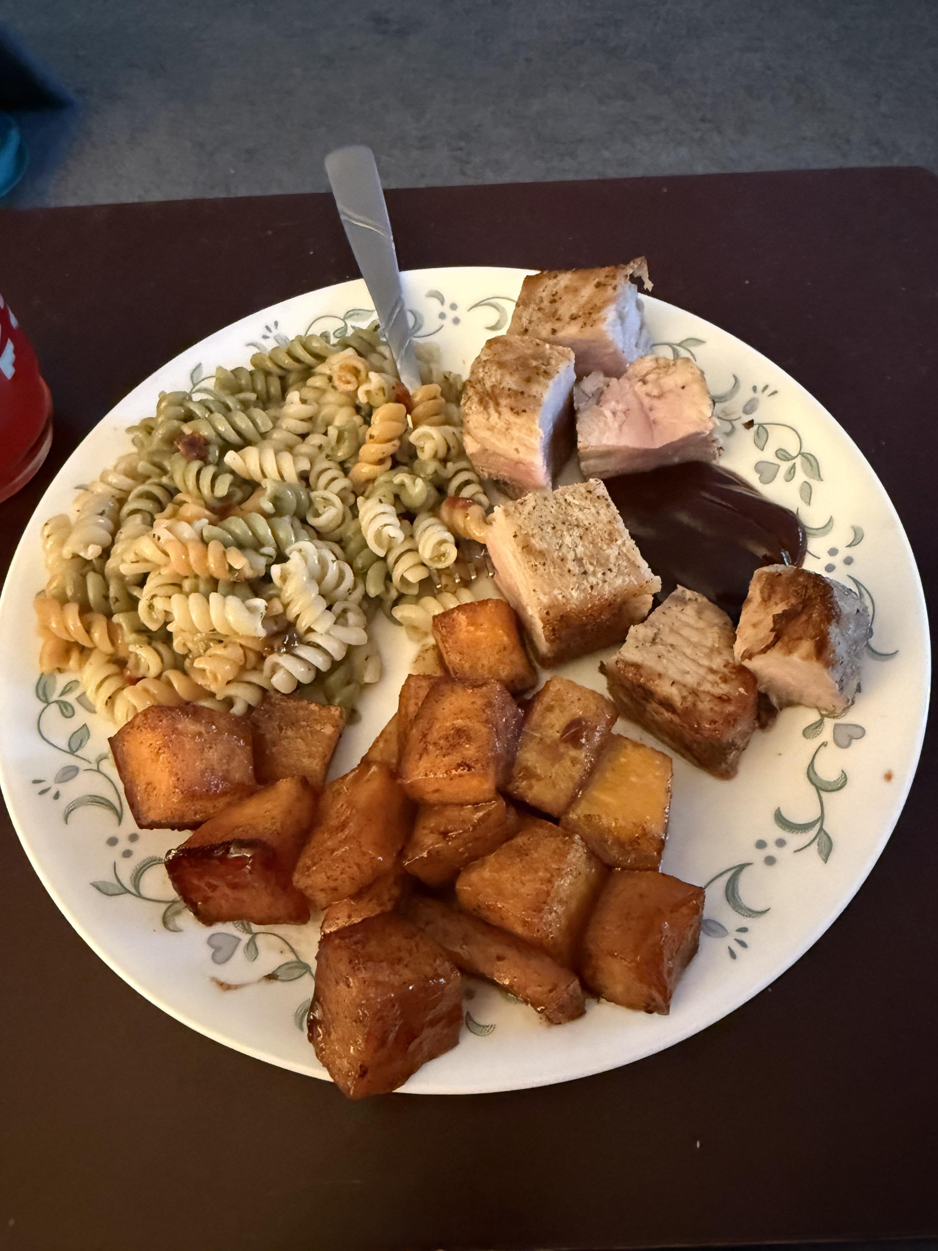 Air-fried pork loin, Kraft Italian pasta salad and candied butternut squash 😁 by 2gecko1983 Dinner Tonight Tonight's Dinner
