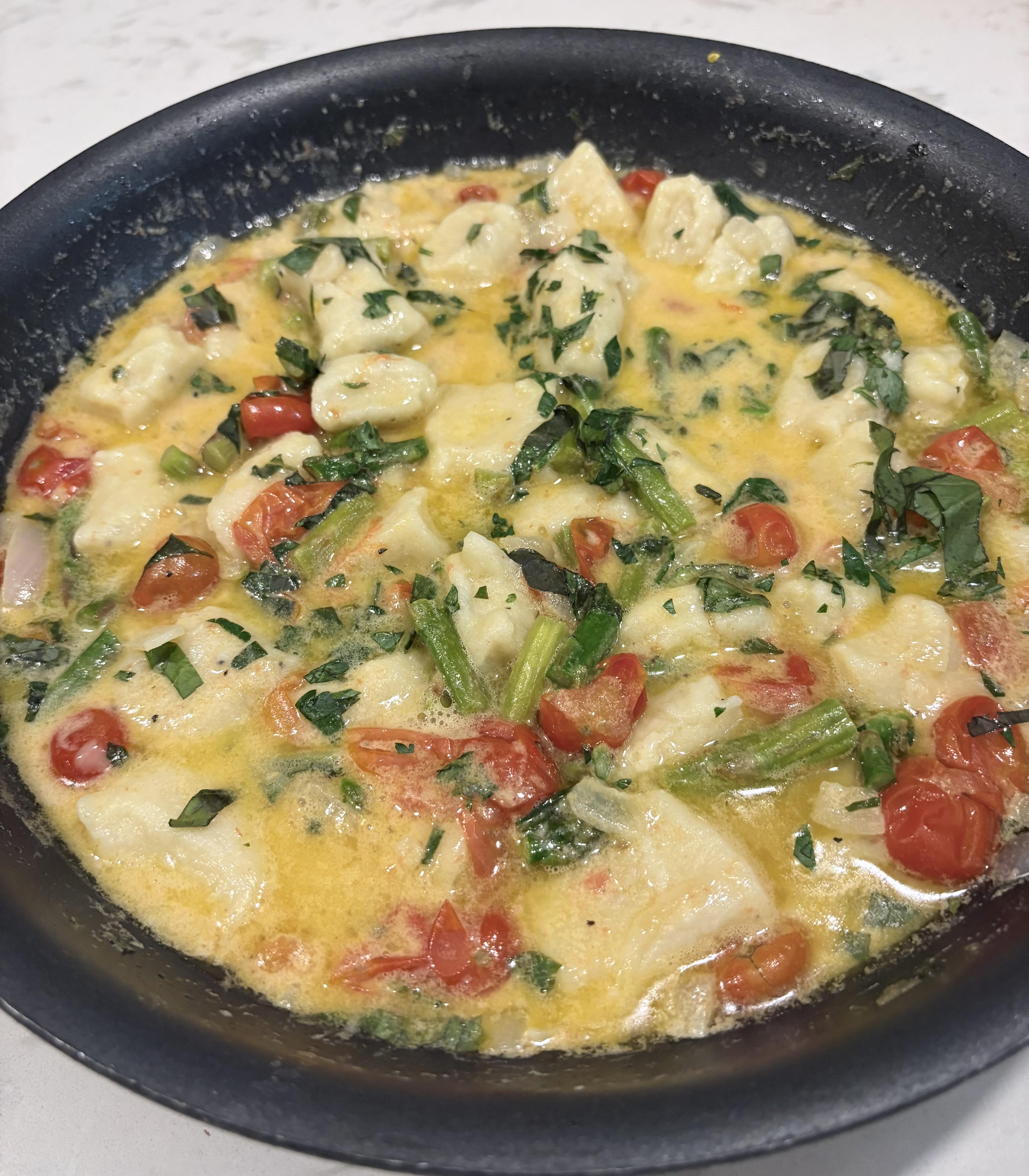 Gnocchi was made with leftover mashed potatoes. Yummy!