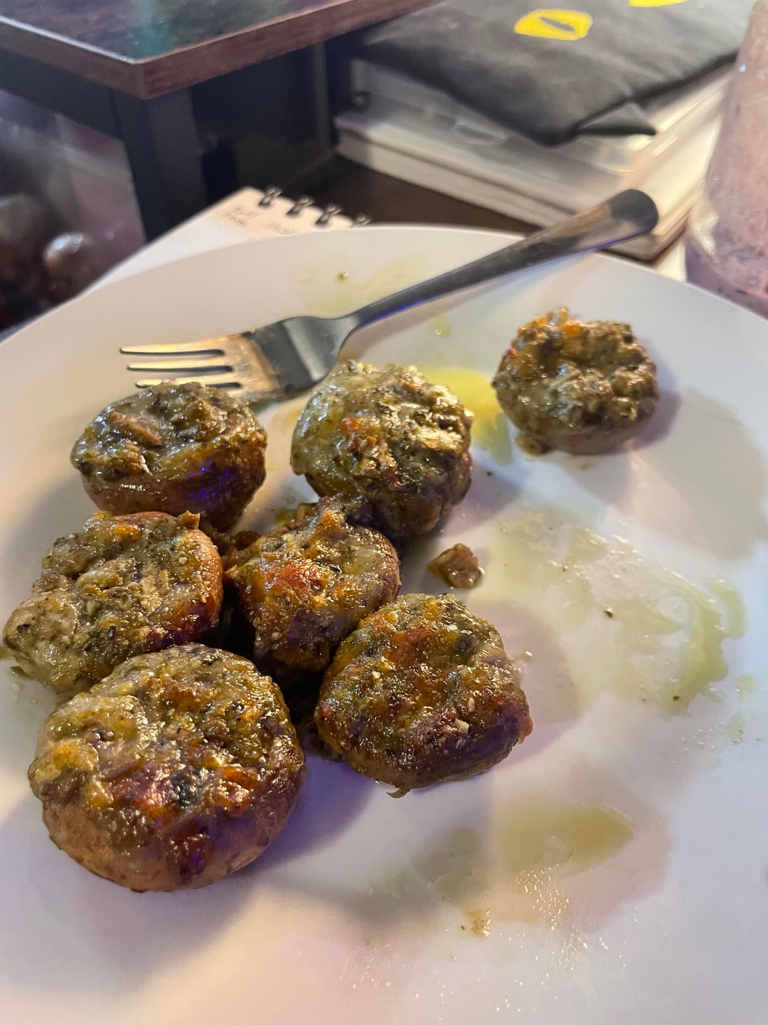 Im only a week and a half in and I’m already fighting the urge to eat out. This was by far the most intricate thing Ive made so far, not the healthiest, but definitely scratched the itch. If you’re interested i scooped out the stems, cut them up, and mixed them with pesto and cheese, then I stuffed the tops and baked ‘em at 250 for 20ish minutes. Definitely will be making again soon, unfortunately I’m currently out of mushrooms ;(