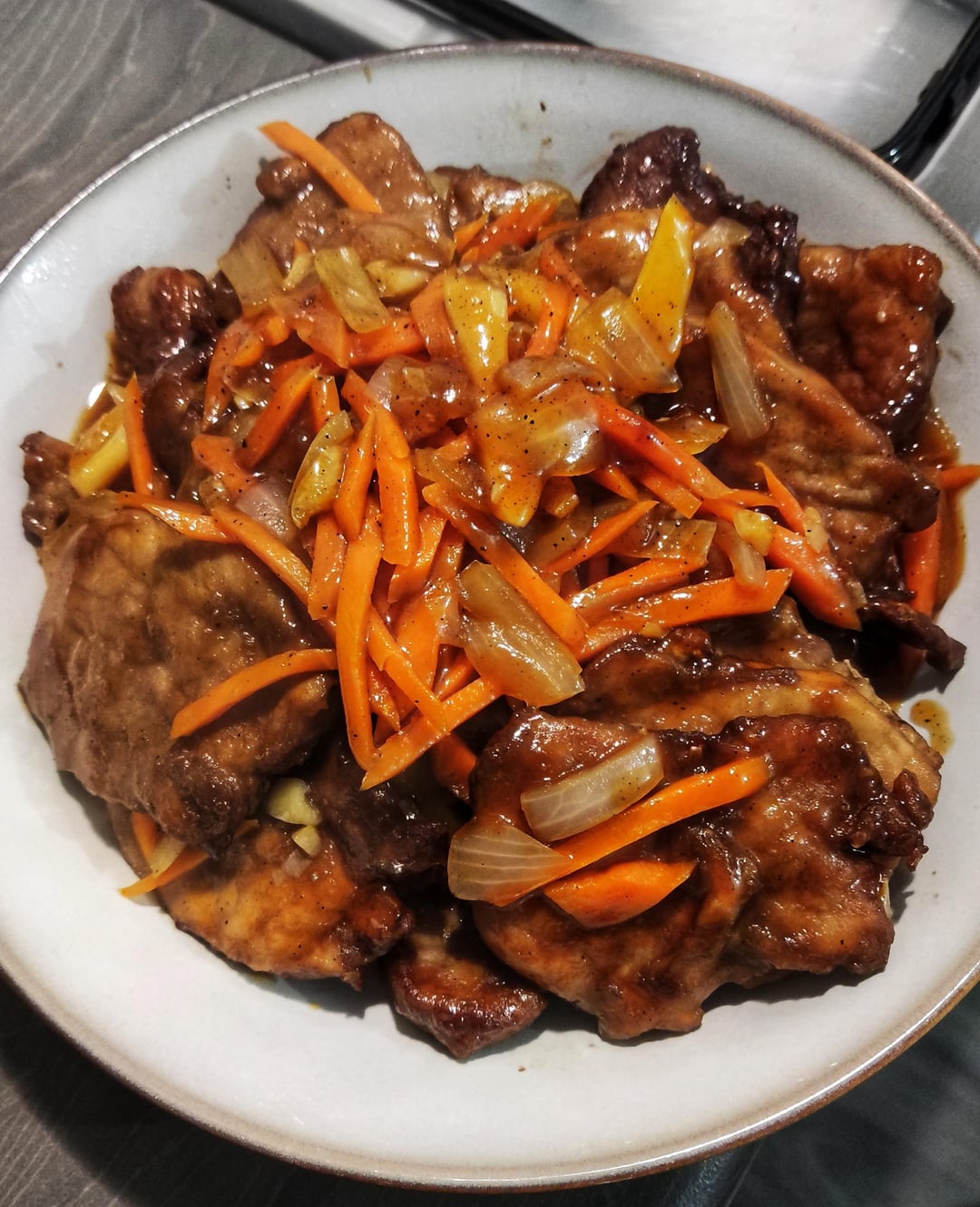 Add the air fried pork. Serve with rice and/or your choice of veg.