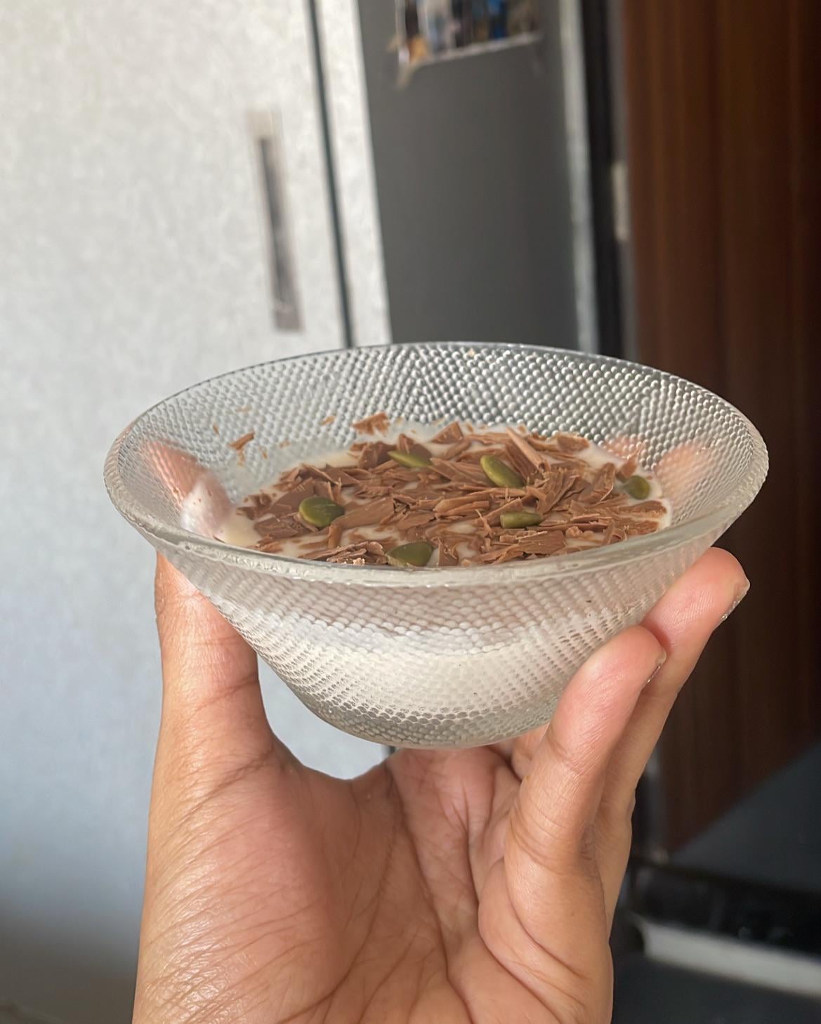 The easiest dessert Take vegan milk, add corn starch, boil it until it thickens, garnish with vegan chocolate or nuts & serve chilled. 🥰 by Sak9122000 Vegan Food Vegan Food Recipes Vegan Recipes