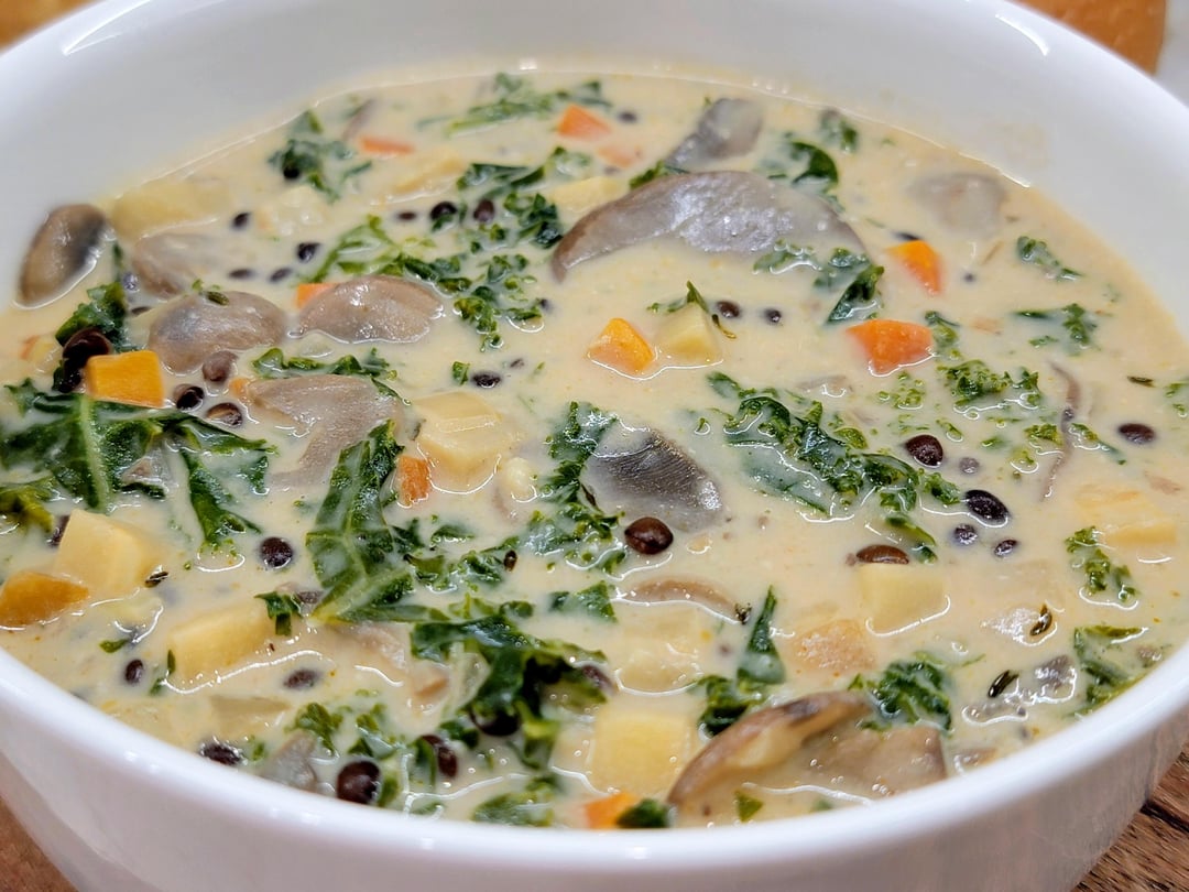 Creamy Vegan Forest Soup Mushrooms, carrots, parsnips, kale and cashew cream. Enough said because this soup is much more than the sum of its parts. by emmadunkirk Vegan Food Vegan Food Recipes Vegan Recipes