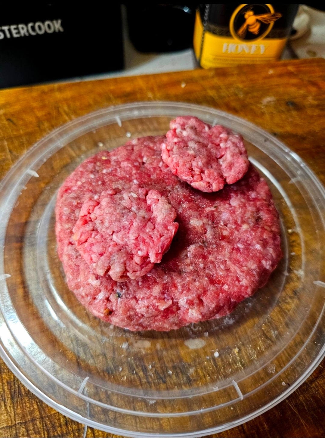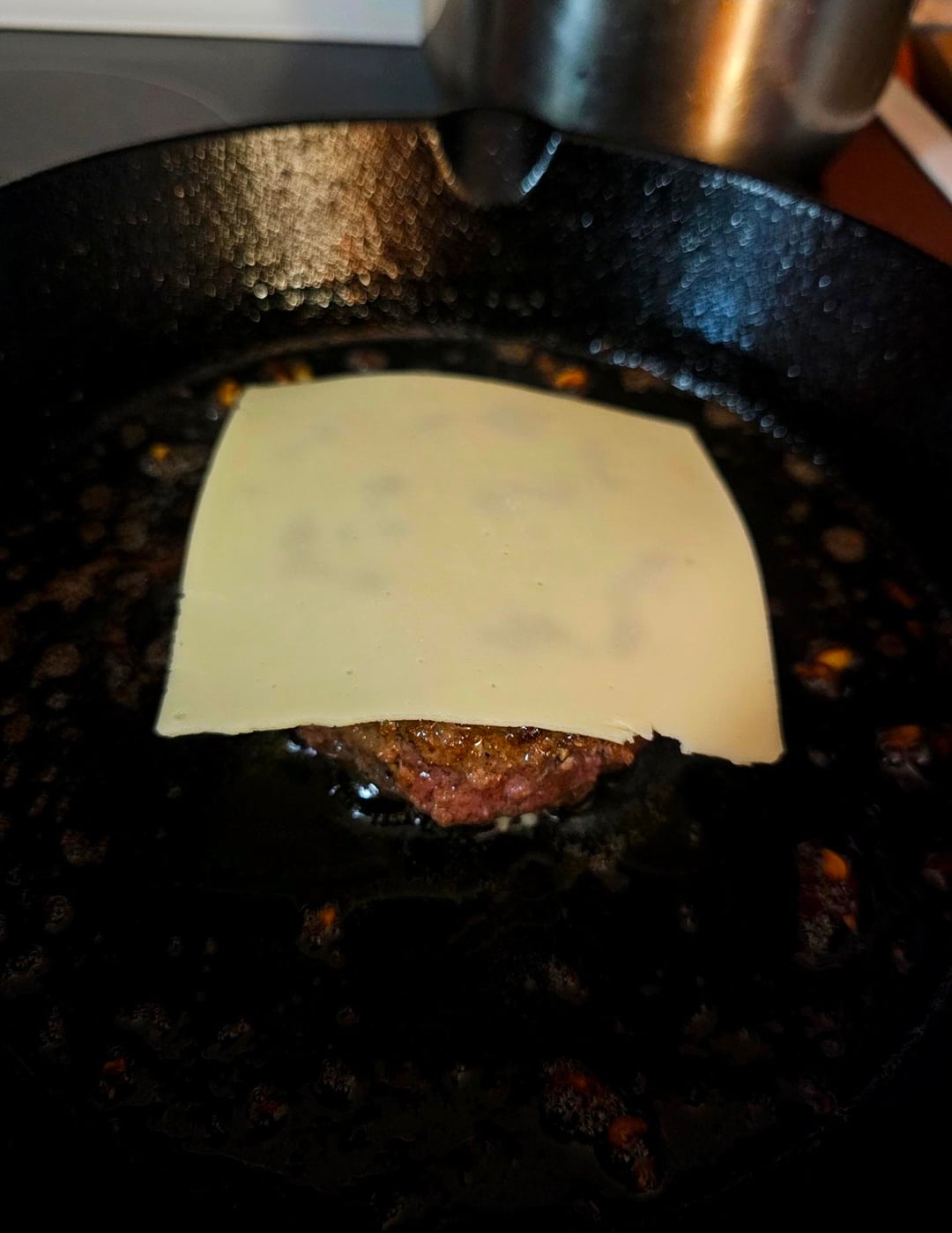 Season ground beef w/ s&p but instead of making a ball to smash, stuff it with smoked cheddar 😆