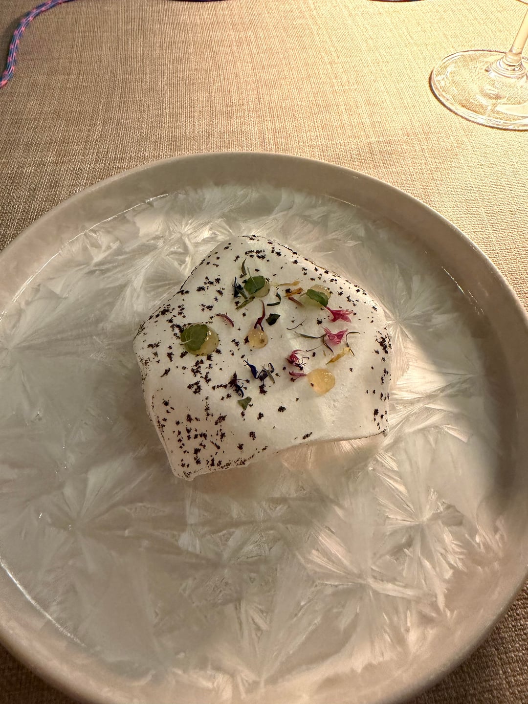 Lastly the two desserts, the first of which was ice cream with a merengue, and then the chocolate and flaky pastry which my friend and I shared. Overall, this was an excellent meal. The 7 course tasting was €180, which I also thought to be great value for a ski town in France. Service was slow but friendly, which was a perfect way to wrap up an intense day of skiing.
