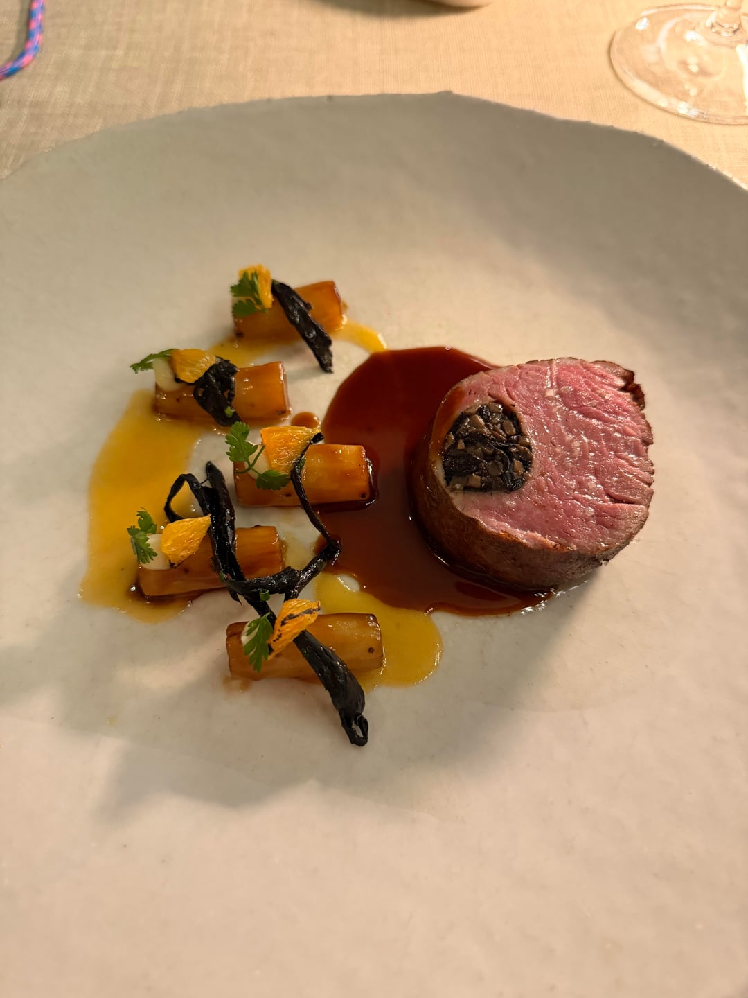 Bread was served with citrus butter, and the scallop course followed. This was so good too. Next came a variation of a tartiflette, which we had on the mountain earlier, though this one was a lot fancier.
