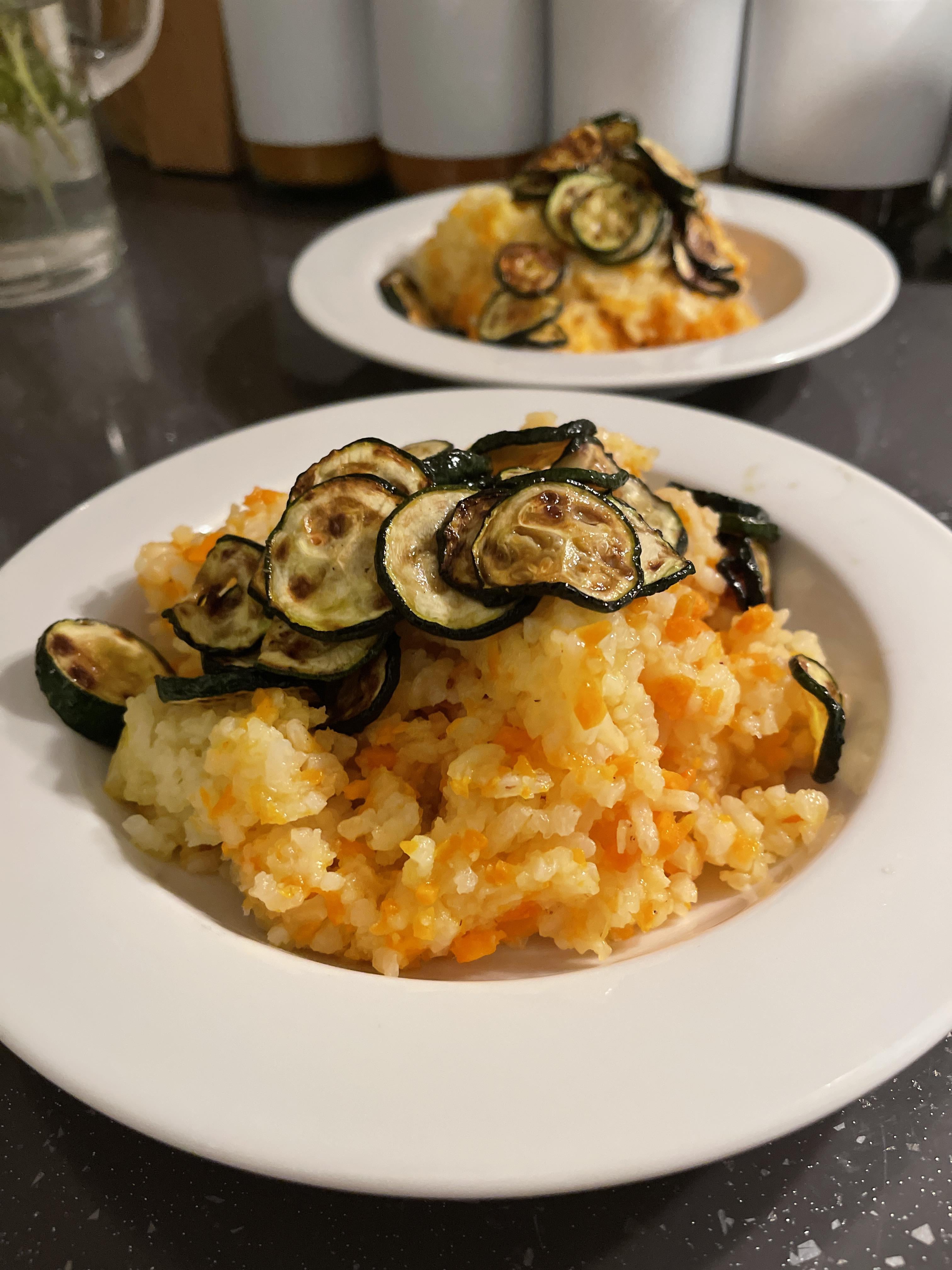 [OC] Creamy Rice with Carrots and Crispy Zucchini