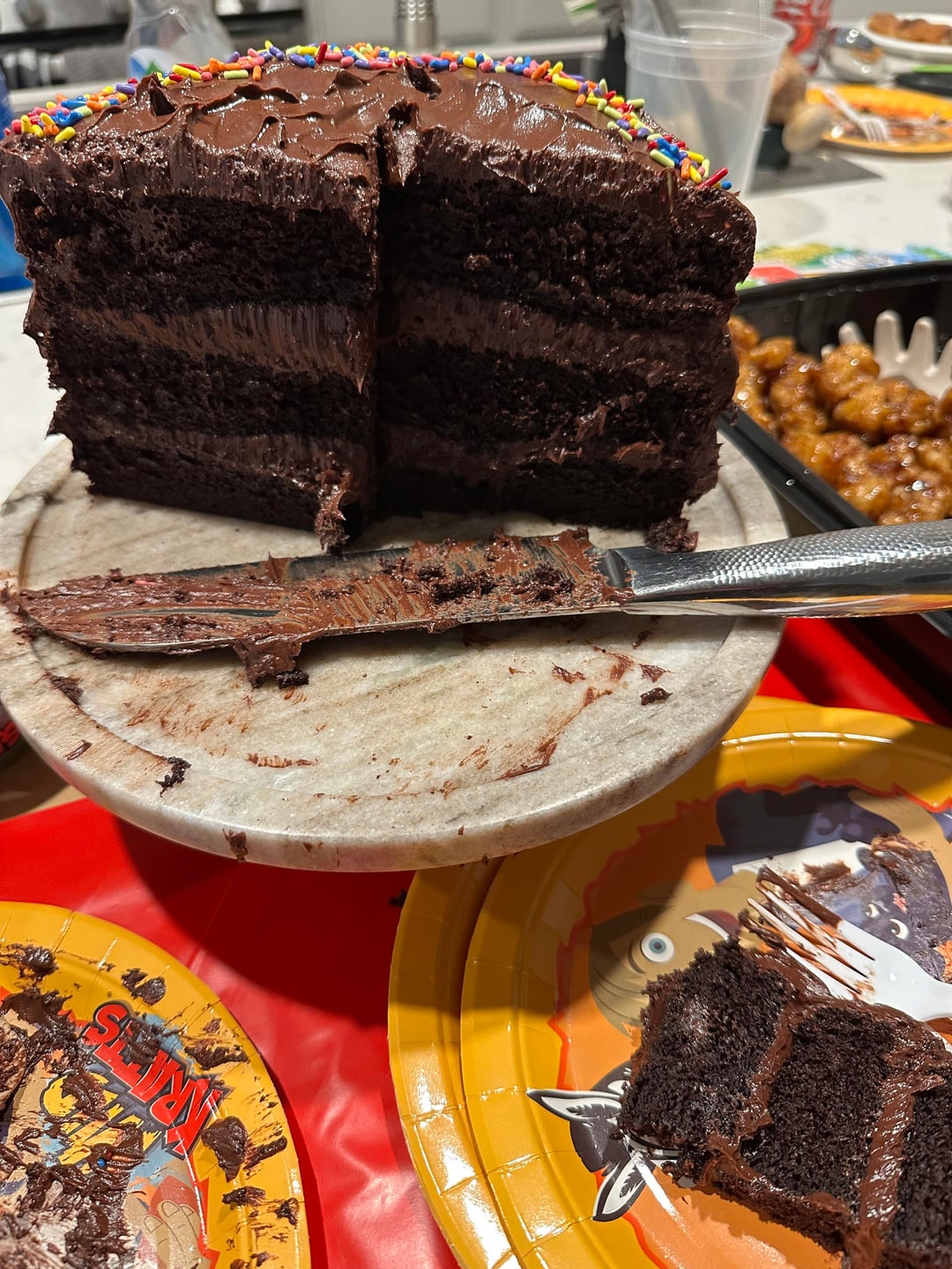 Ignore the cake decor lol I cant decorate a cake to save my life. This is the best chocolate cake recipe I have ever tried. I make it for everyone’s birthday. This time for my nieces. I also included the photo I posted about this cake last time. 🤤🤤