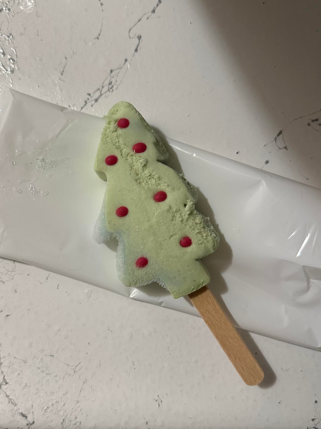 Dessert: Sundae Shoppe Christmas tree ice cream pop ~ from Aldi (60 calories, 1g protein)