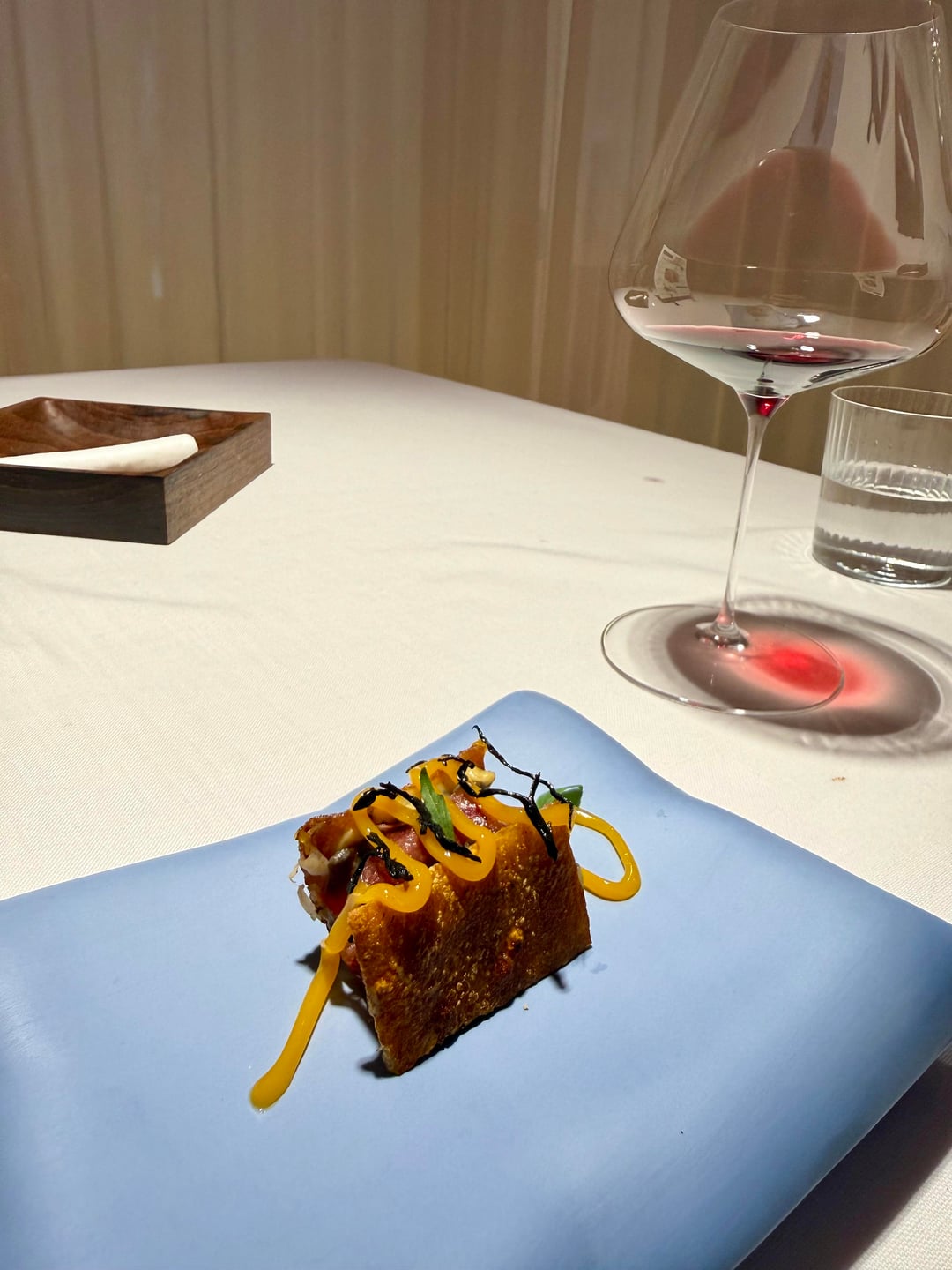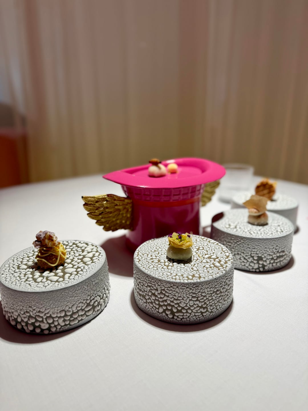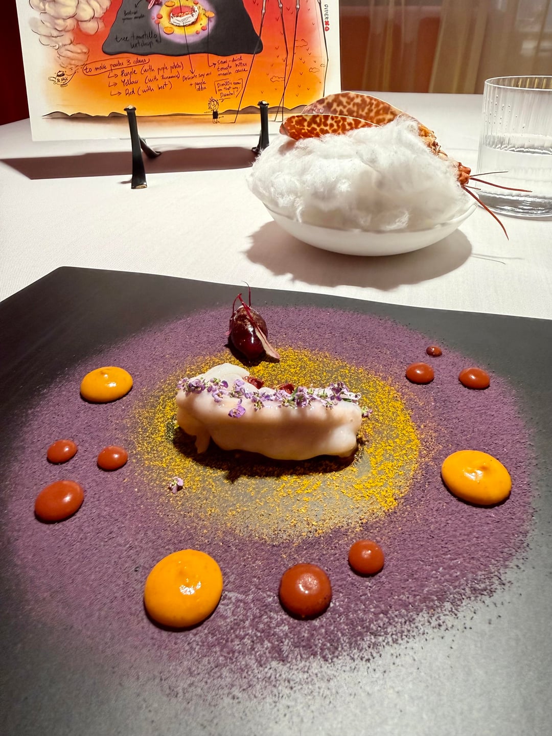 From savory – paella Japanese handroll riffs – delicious tale side, pork crackling nostalgia dish, spring roll and ravioli, and duck nugget w truffle. Some of the milk covered dishes I could appreciate the nuances of but sometimes leaned towards sweetening a savory dish a bit far for my palate.