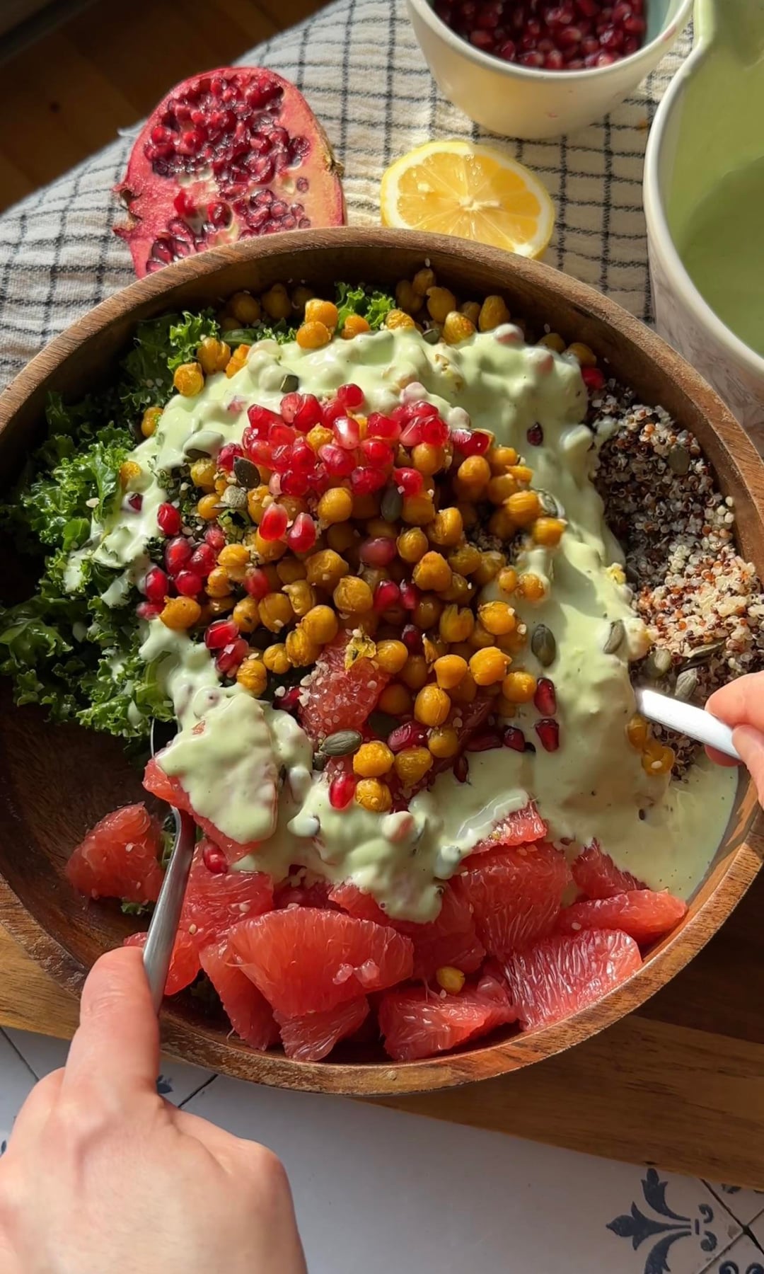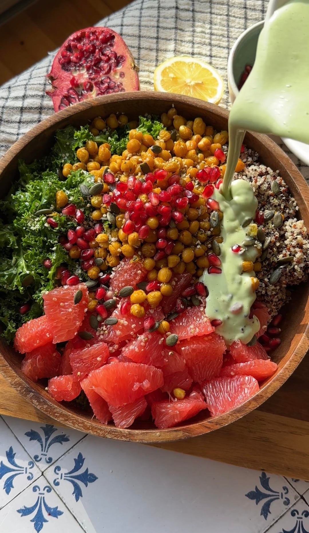 ✨ Vitamin C + polyphenols (kale, grapefruit, pomegranate) → antioxidant & anti-aging support