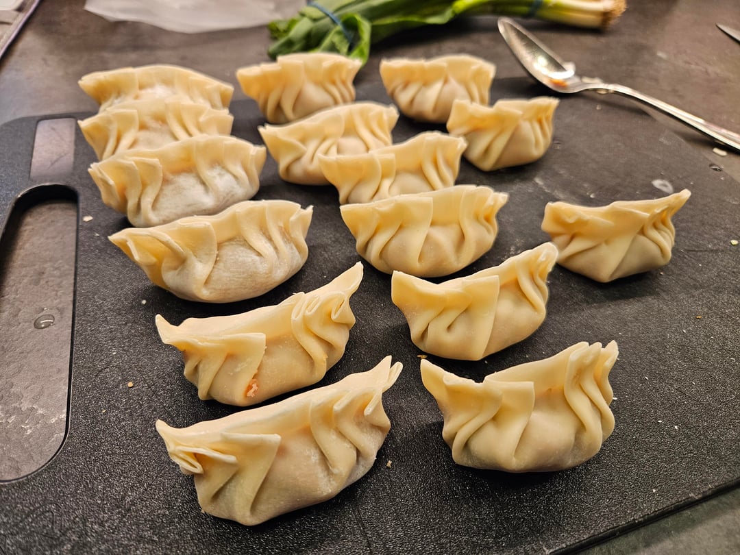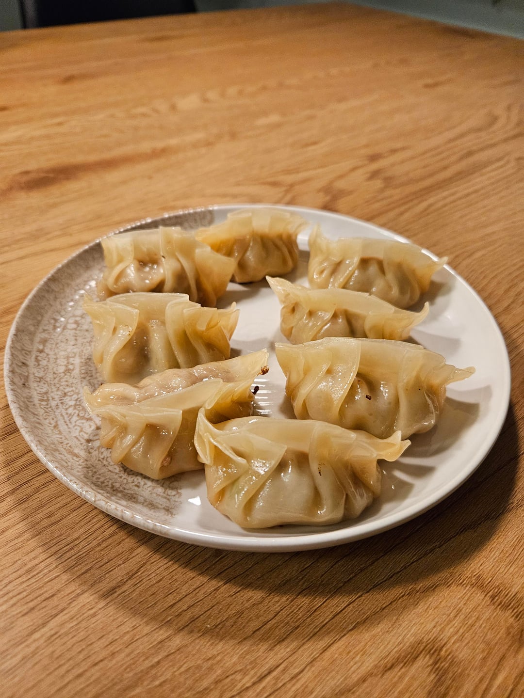 Won't be my last! These were delicious but man the folding took some time, will save for weekends and not do it on a Tuesday in the future. Made with pork, cabbage, spring onions and seasoning/sauce. by pafdoot Food