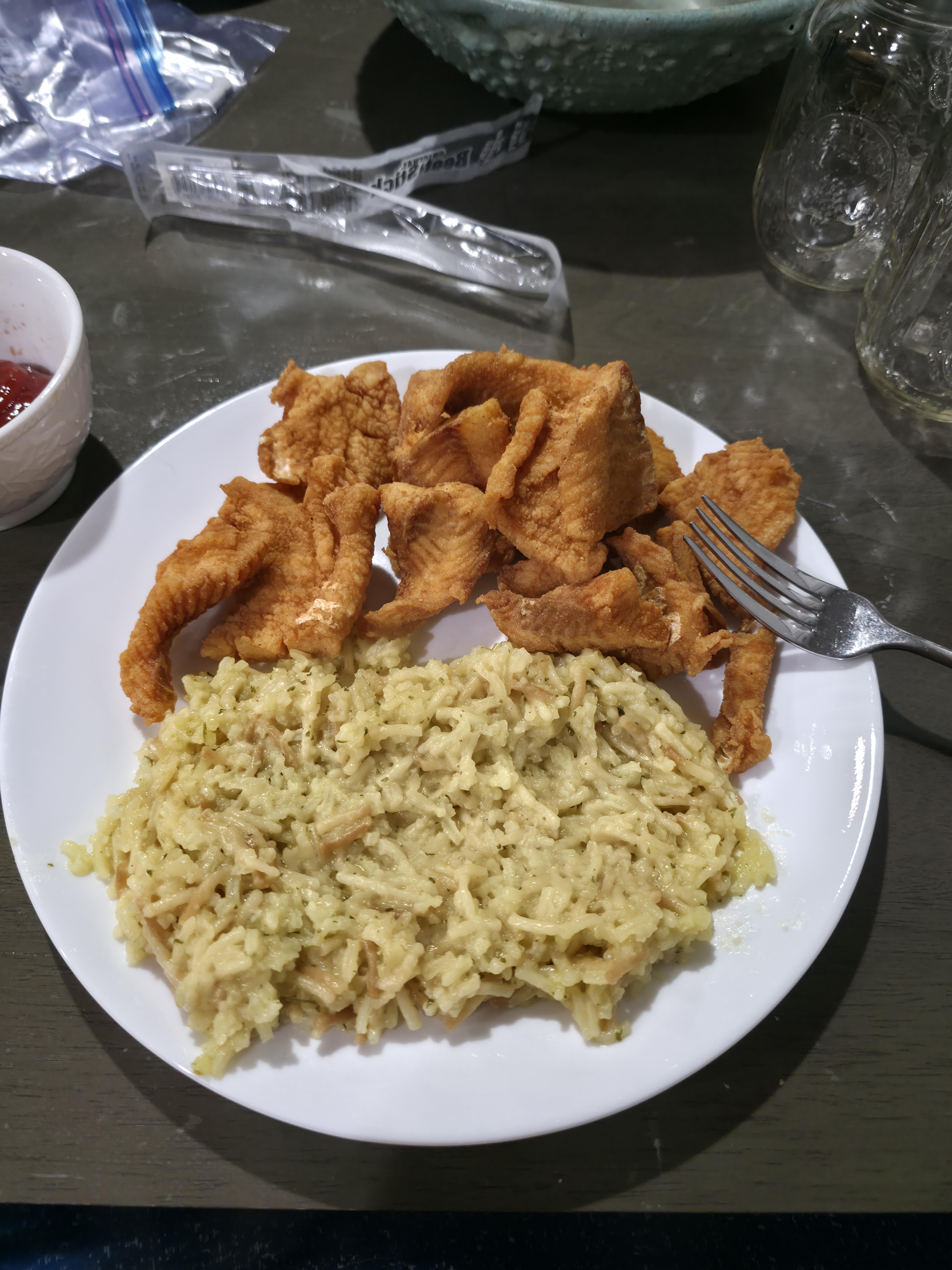 1. Walleye was tossed in some masa that was seasoned with garlic powder, onion powder, salt, and pepper before deep frying.