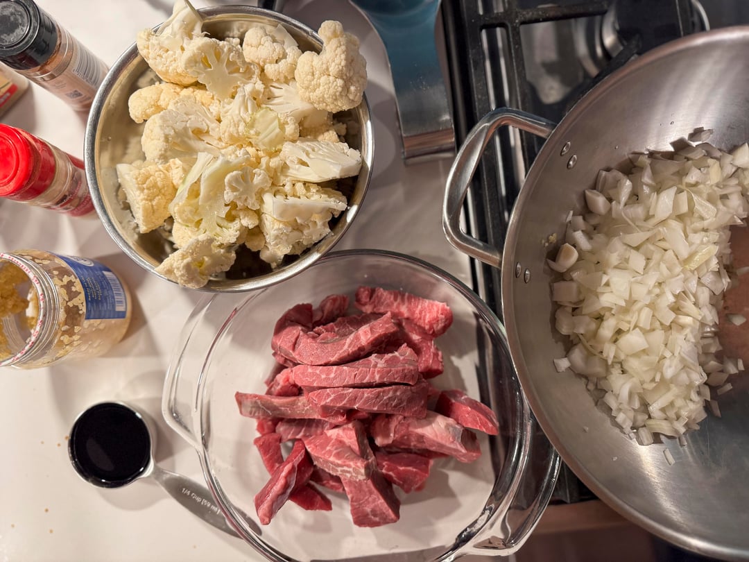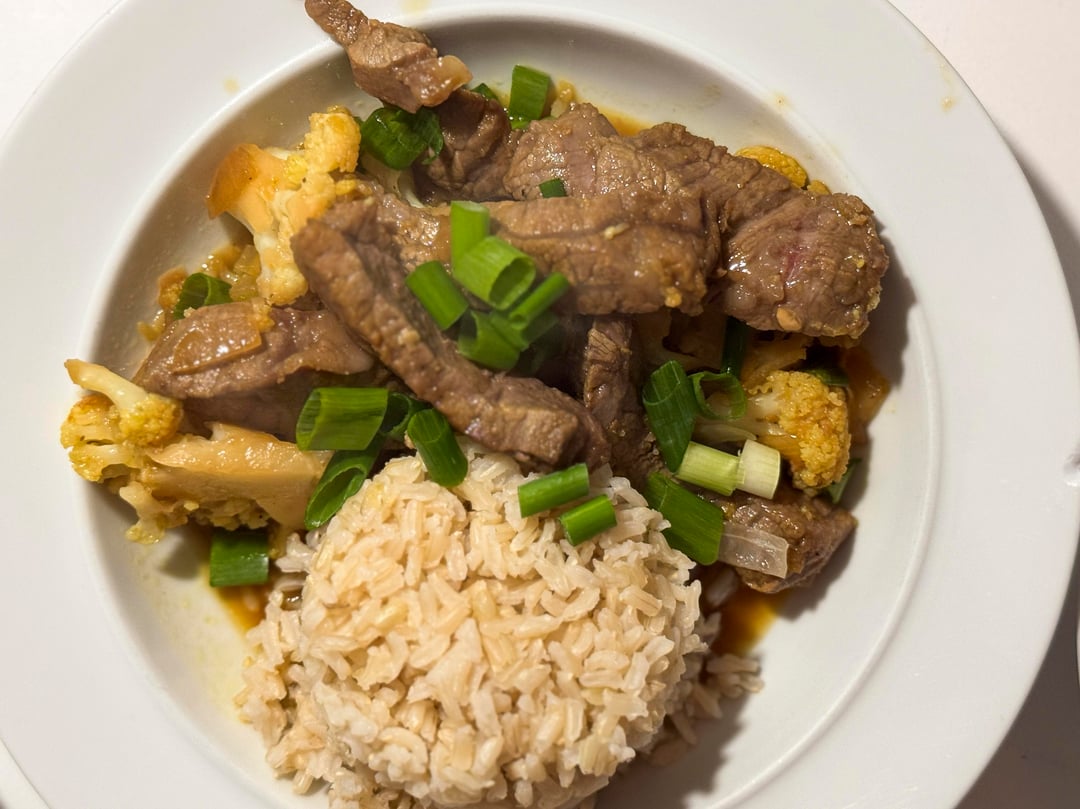 I added some butter and more spices to this, the critics said to make it again 😉 [https://eatbetterrecipes.com/beef-cauliflower-stir-fry-recipe/](https://eatbetterrecipes.com/beef-cauliflower-stir-fry-recipe/)