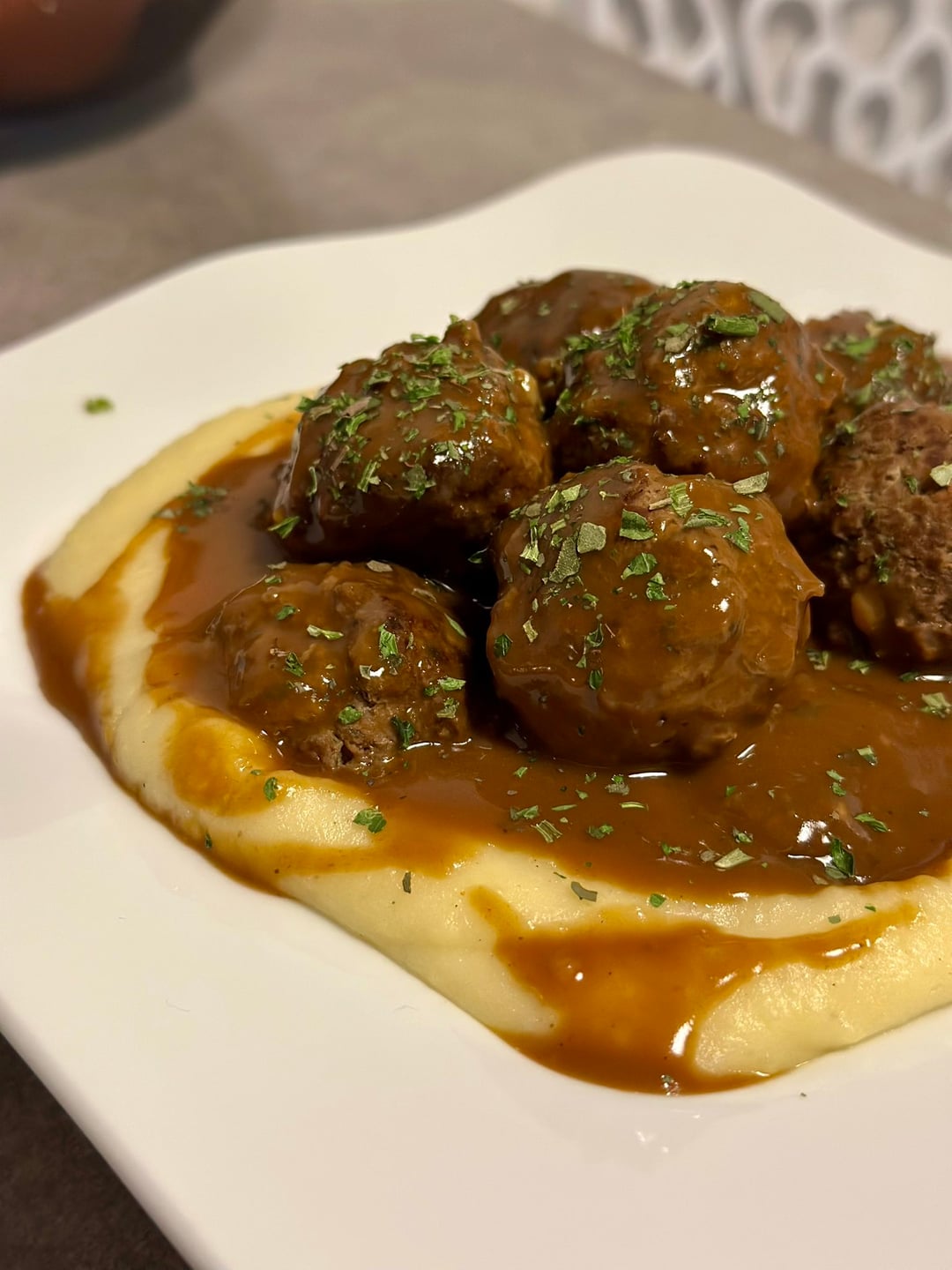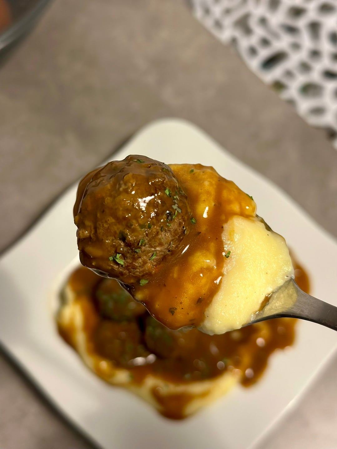 Use this recipe :[Creamy mashed potatoes with meatballs ](https://bitemakes.com/creamy-mashed-potatoes-meatballs-with-gravy-a-comfort-food-classic-for-cozy-nights/)