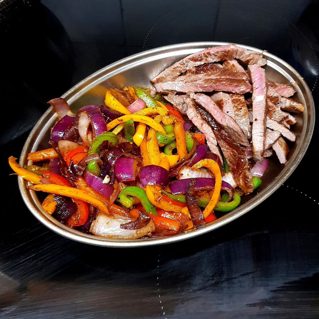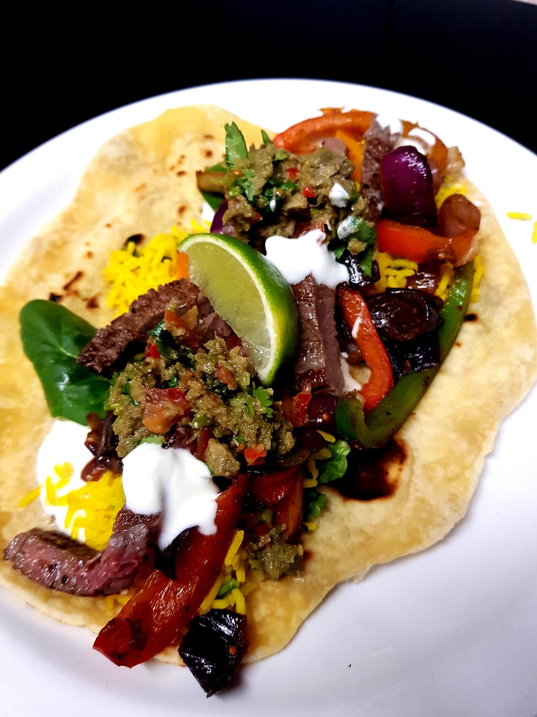 [OC] Beef Fajitas with Homemade Wraps. My Guac Oxidised and Beef was Painfully Thin (Sizzle Steaks) But it Was Wednesday So…. 🤷🏼‍♀️