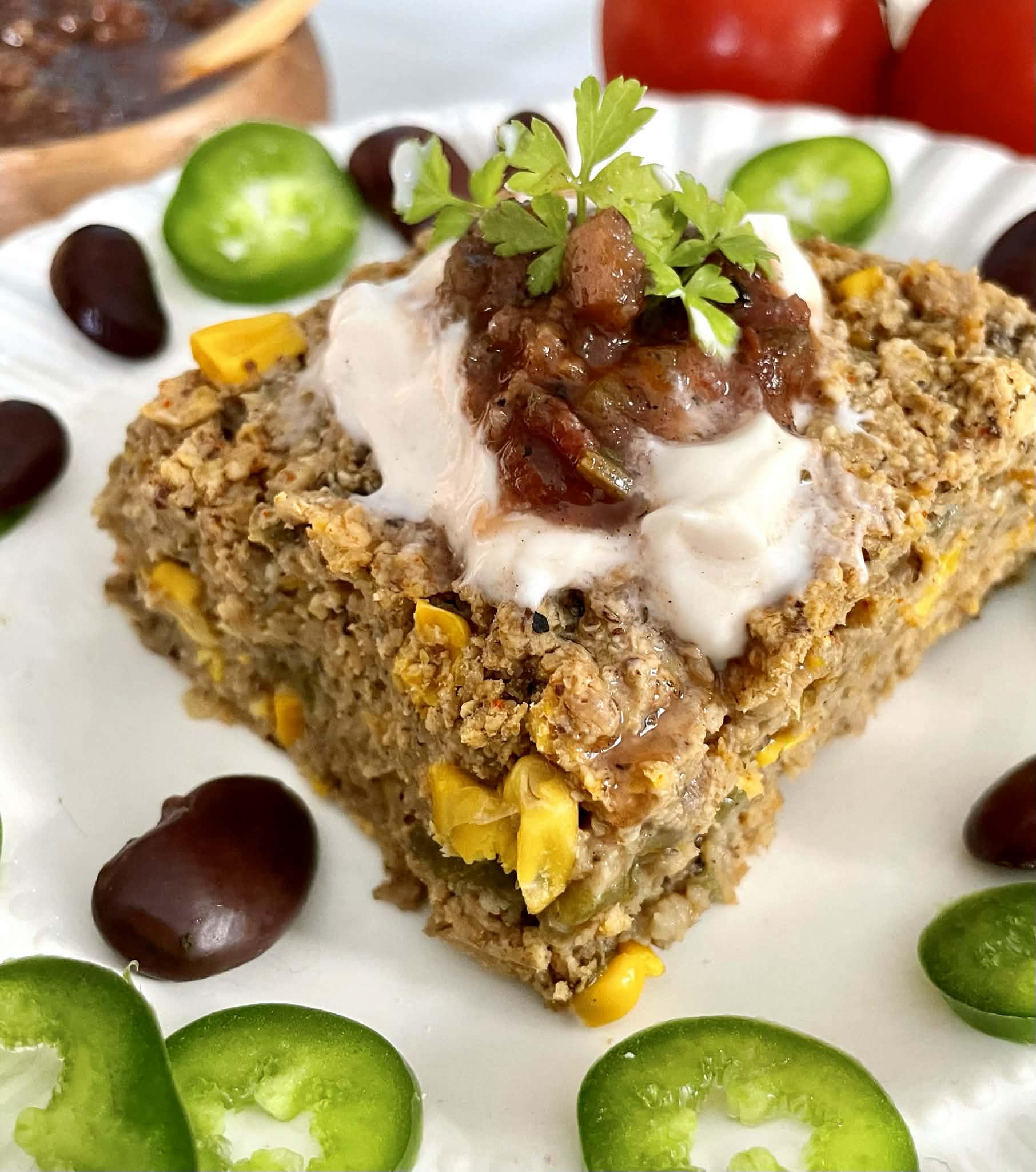 Southwest Savory Baked Oatmeal with Corn, Green Chiles and TVP by MaximalistVegan Vegan Food Vegan Food Porn