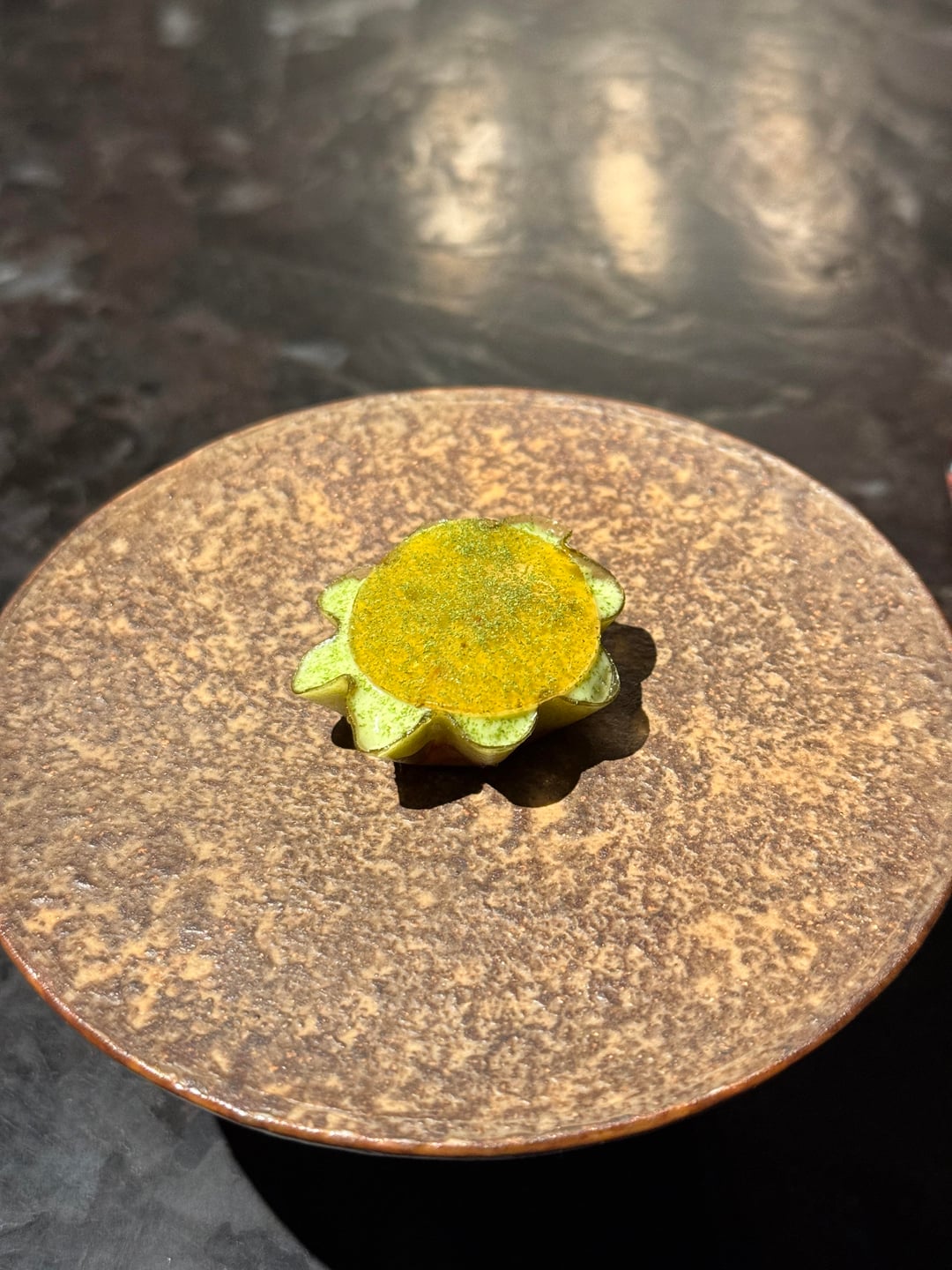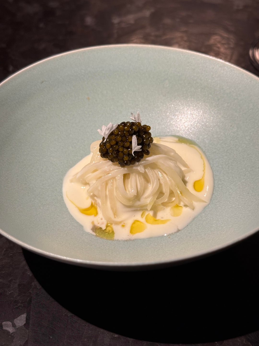 Kohlrabi – I really enjoyed this. I thought it felt very balanced between the earthy/sweetness of the kohlrabi, oceanness of the caviar and crab, and creaminess of the… cream.