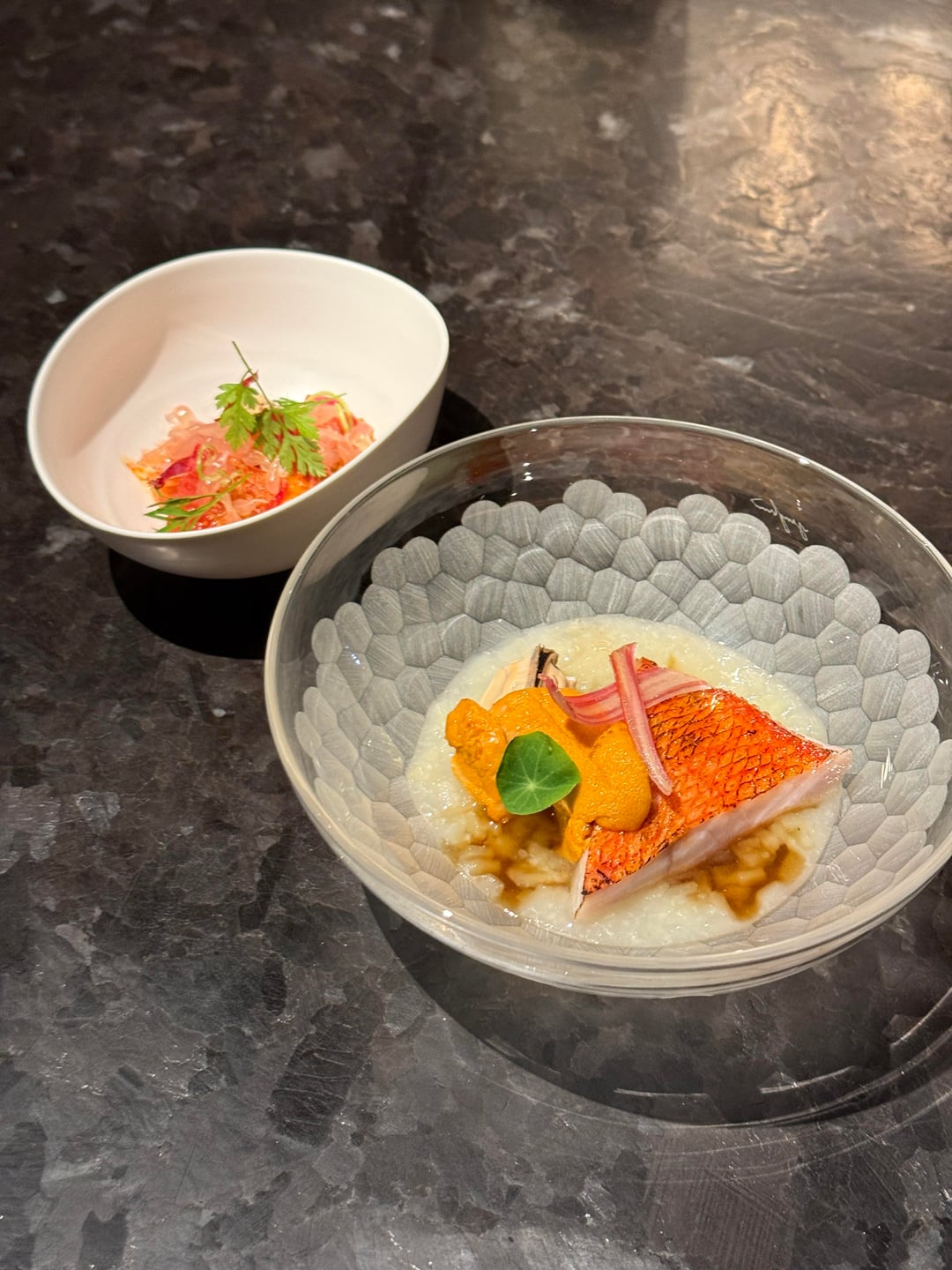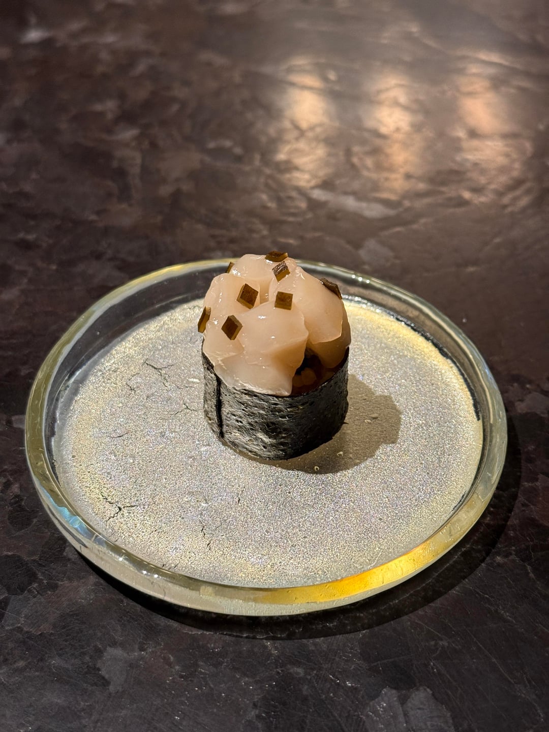 Monkfish liver – I cannot give an objective review. This is maybe the 5th time I gave ankimo another chance, and I still don’t enjoy it. The guests next to me loved it though if that means anything.