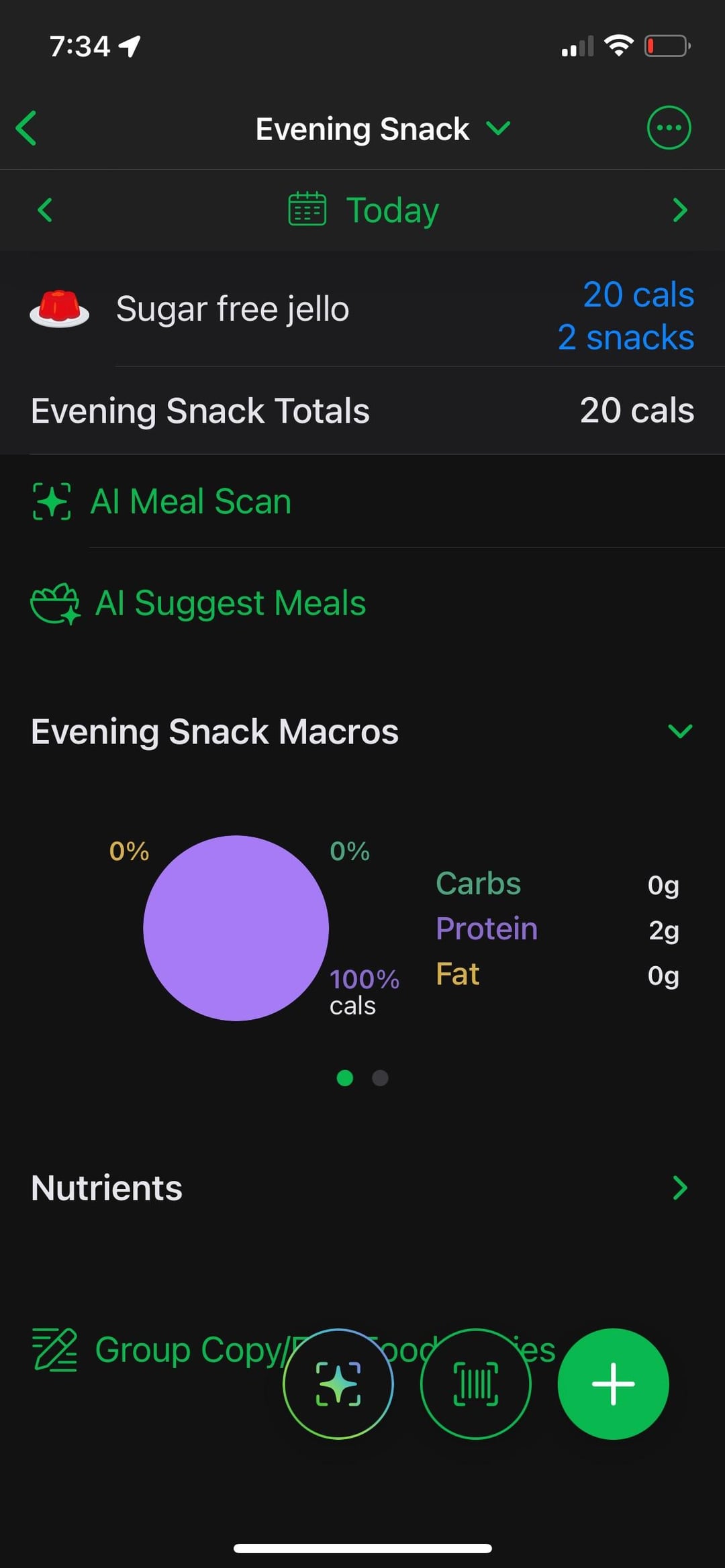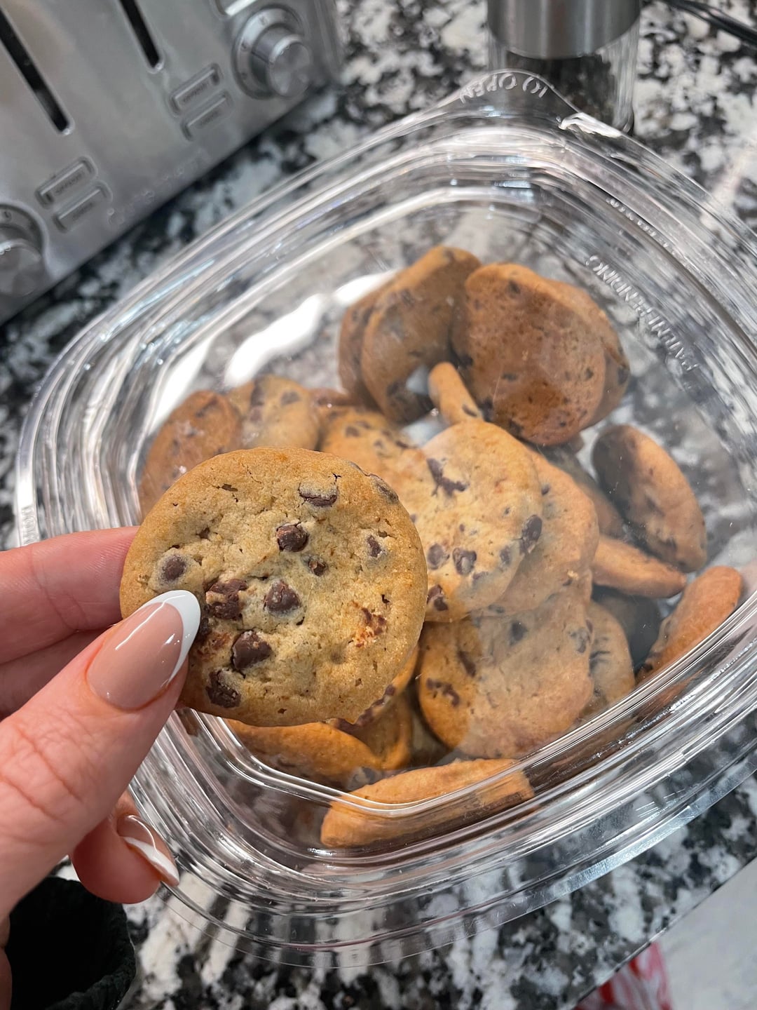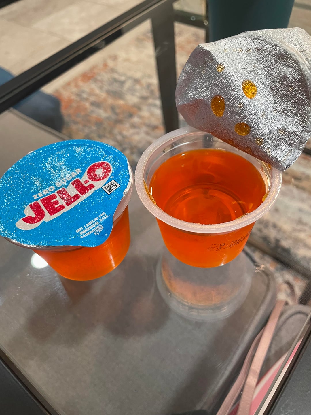 Snacks: 1 Mini Chocolate Chip Cookie, 2 cherry plums, 2 Sugar Free Jolly Ranchers, 2 Sugar Free Jello Cups