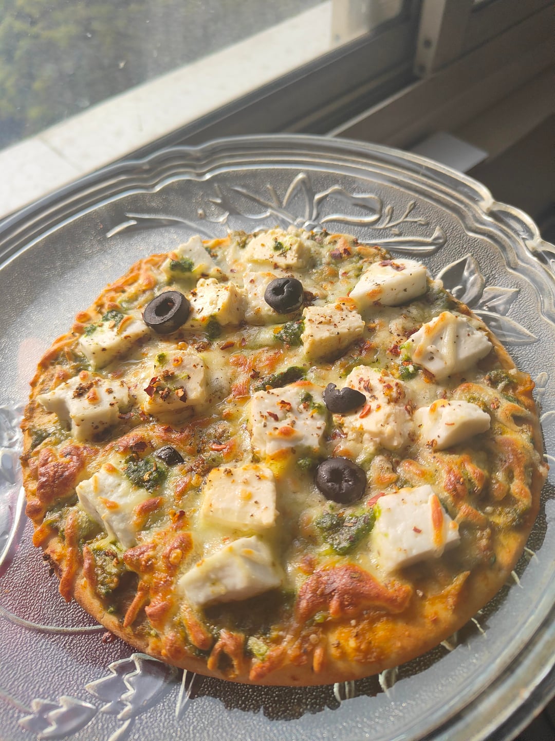Homemade pesto pizza! 500 cals