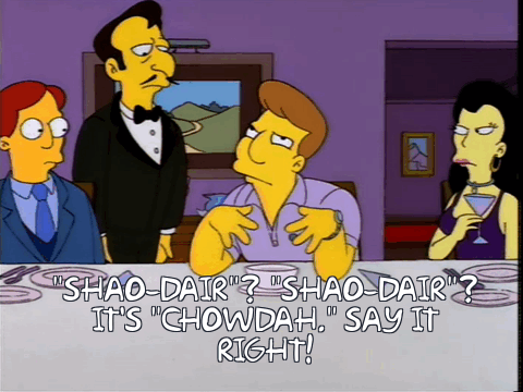 [Chowdah!](https://frinkiac.com/gif/S05E20/529611/535234.gif?b64lines=ICJTSEFPLURBSVIiPyAiU0hBTy1EQUlSIj8KIElUJ1MgIkNIT1dEQUguIiBTQVkgSVQKIFJJR0hUIQ==)