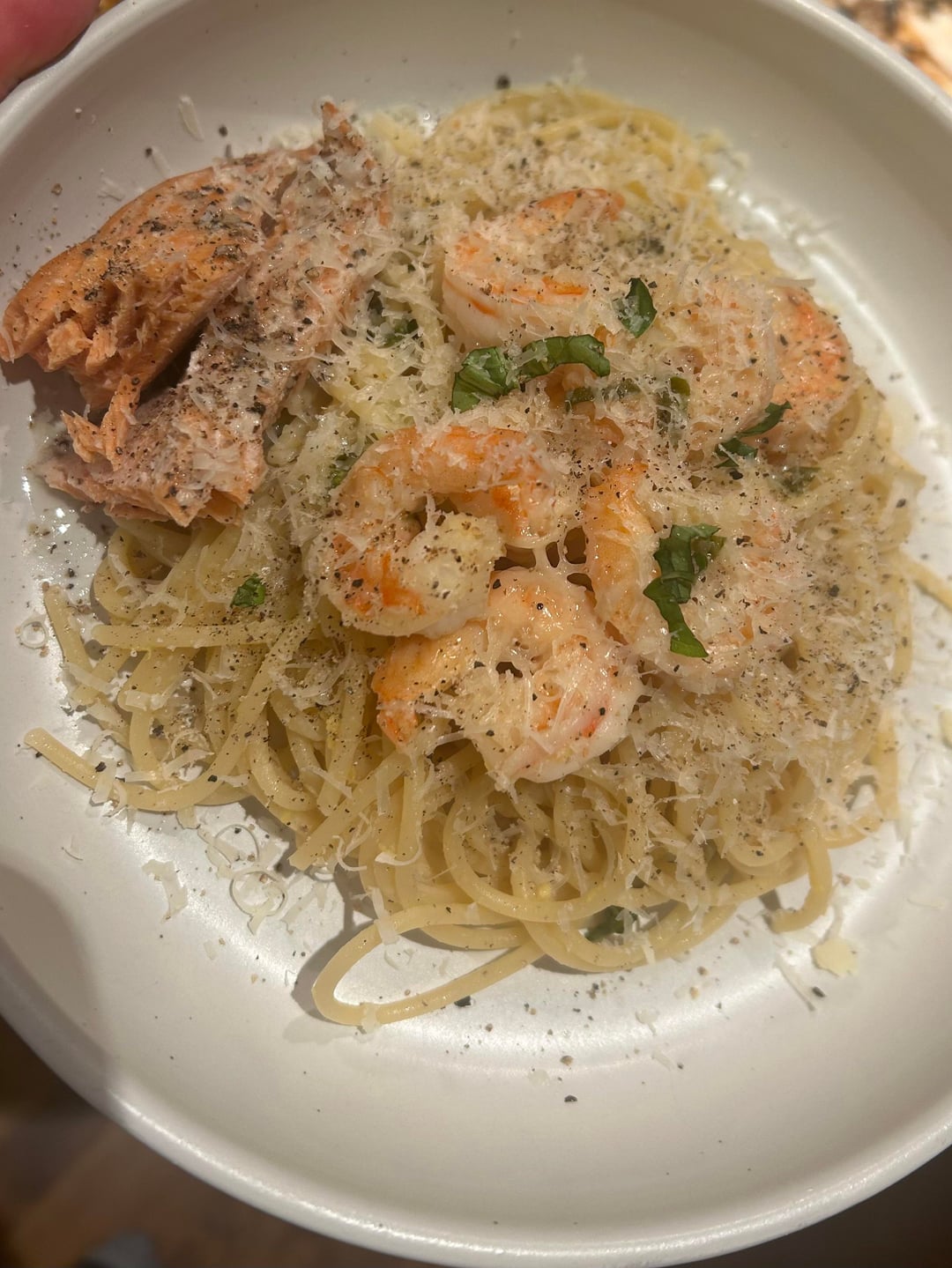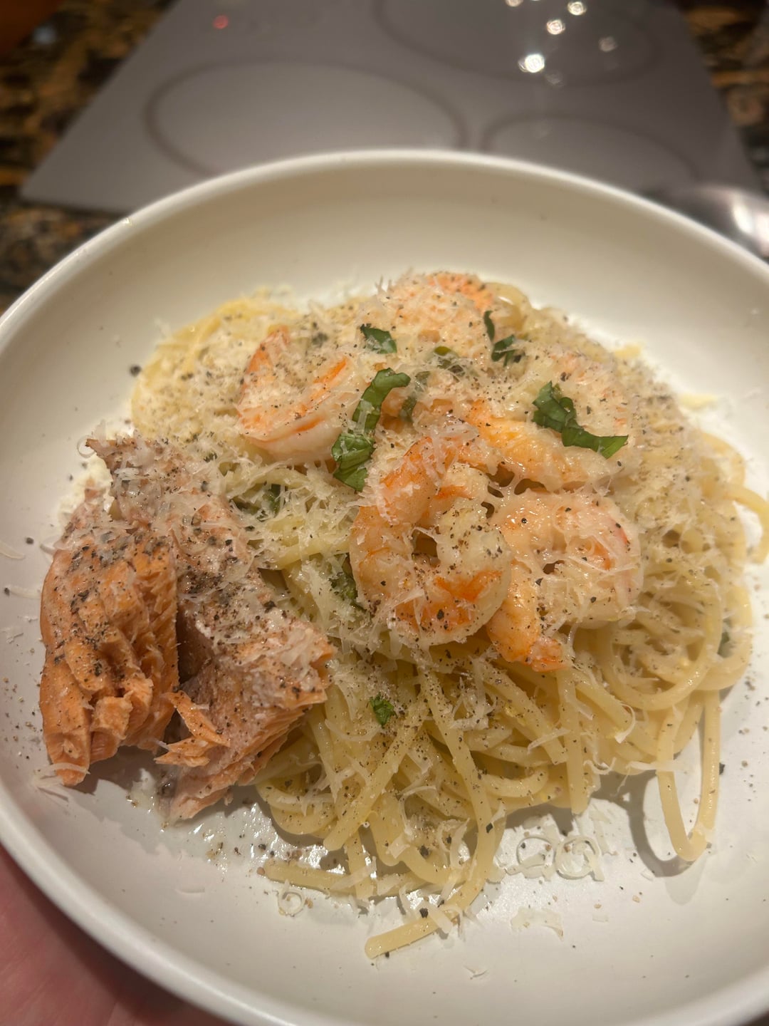 I made a pizza lasagna with homemade sauce. Italian sausage, pepperoni, and mushrooms with 3 cheeses.